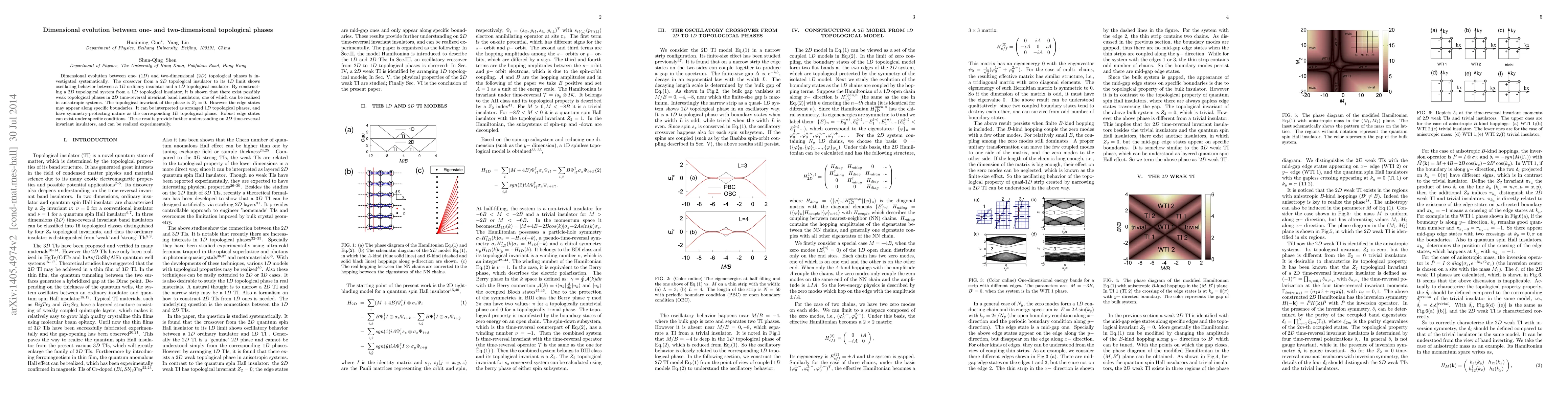 This paper investigates the dimensional evolution from 2D topological insulators to 1D topological phases, revealing oscillatory behavior and the existence of weak topological phases in 2D systems. It demonstrates that robust edge states can emerge under specific conditions, enhancing the understanding of 2D time-reversal invariant insulators.