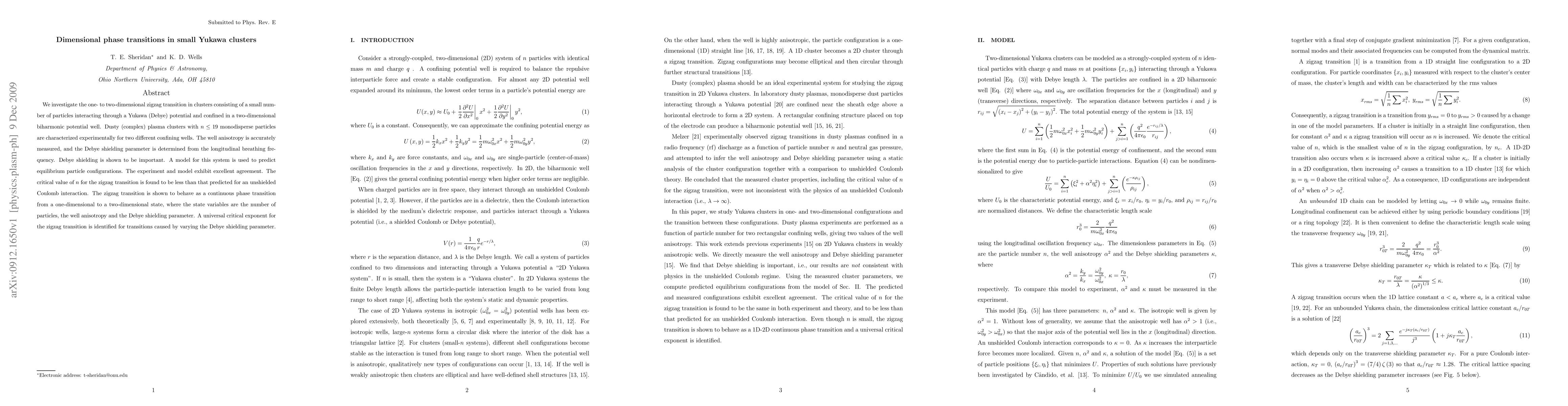 Researchers investigated phase transitions in small Yukawa clusters with up to 19 particles, finding that Debye shielding is important and the zigzag transition behaves as a continuous phase change from one-dimensional to two-dimensional states.