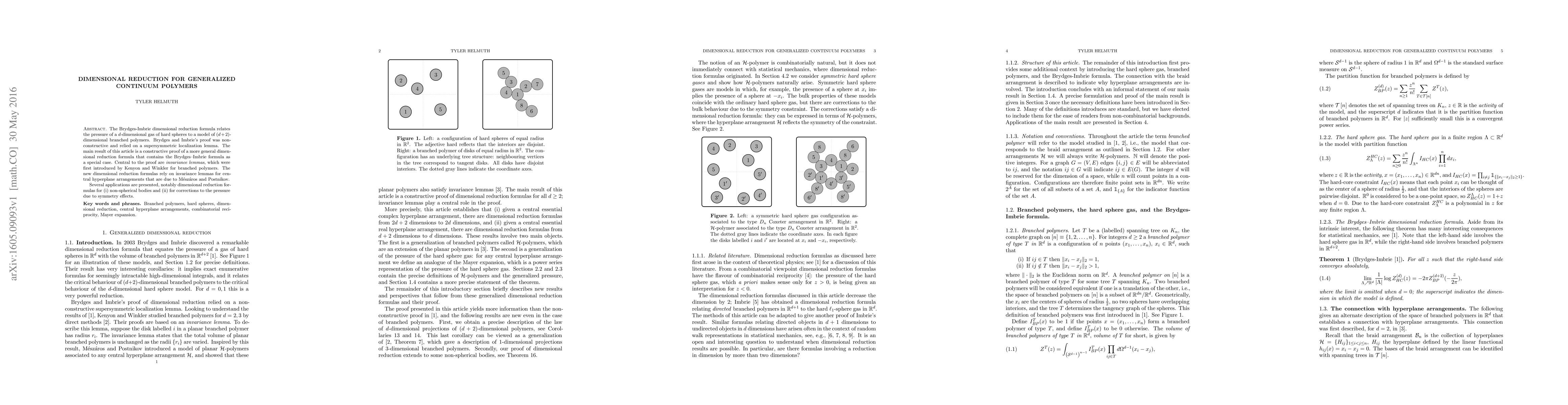 The Brydges-Imbrie dimensional reduction formula relates the pressure of a $d$-dimensional gas of hard spheres to a model of $(d+2)$-dimensional branched polymers. Brydges and Imbrie's proof was non-constructive and relied on a supersymmetric localization lemma. The main result of this article is a constructive proof of a more general dimensional reduction formula that contains the Brydges--Imbrie formula as a special case. Central to the proof are invariance lemmas, which were first introduced by Kenyon and Winkler for branched polymers. The new dimensional reduction formulas rely on invariance lemmas for central hyperplane arrangements that are due to M\'esz\'aros and Postnikov. Several applications are presented, notably dimensional reduction formulas for (i) non-spherical bodies and (ii) for corrections to the pressure due to symmetry effects.