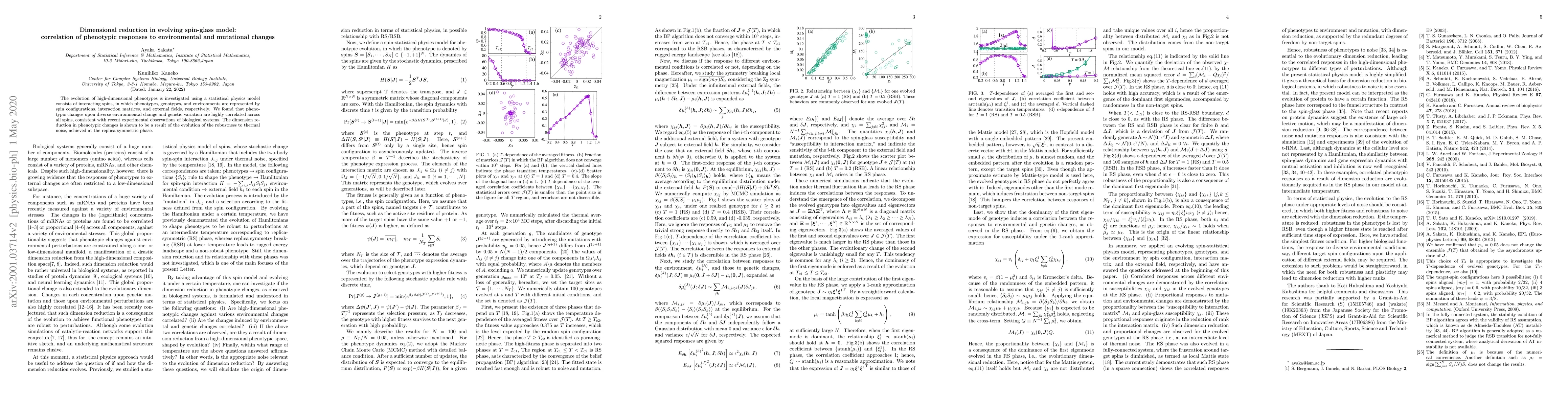 This paper explores the evolution of high-dimensional phenotypes using a spin-glass model, revealing strong correlations between phenotypic responses to environmental and mutational changes. The study demonstrates that dimension reduction in phenotypic changes is due to the evolution of robustness to thermal noise, occurring at the replica symmetric phase.
