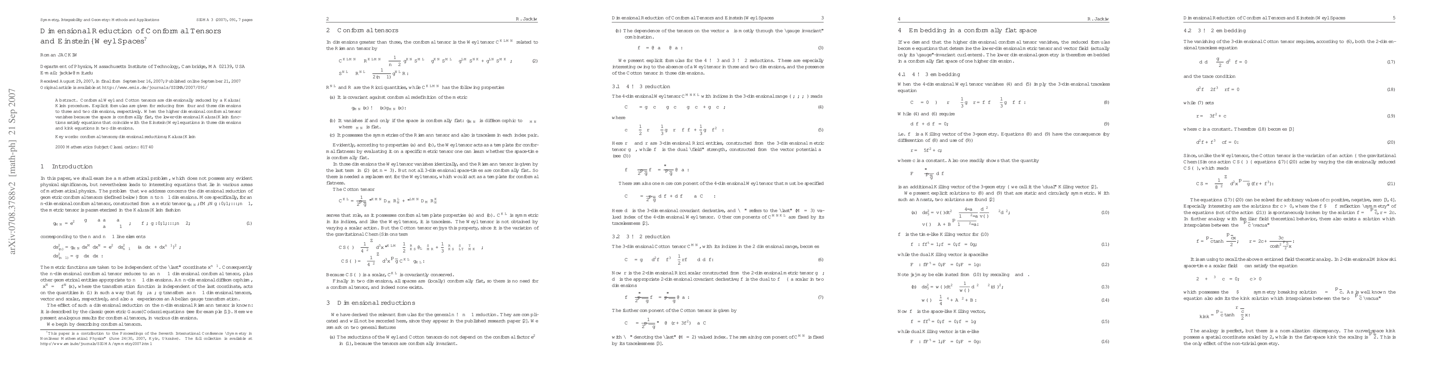 Conformal Weyl and Cotton tensors are dimensionally reduced by a Kaluza-Klein procedure. Explicit formulas are given for reducing from four and three dimensions to three and two dimensions, respectively. When the higher dimensional conformal tensor vanishes because the space is conformallly flat, the lower-dimensional Kaluza-Klein functions satisfy equations that coincide with the Einstein-Weyl equations in three dimensions and kink equations in two dimensions.