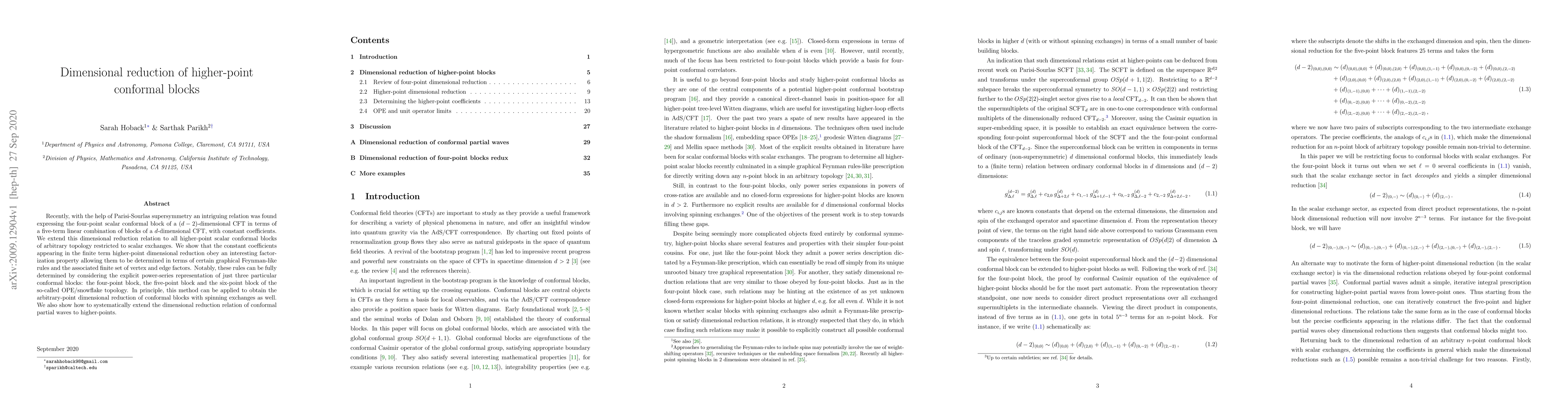Recently, with the help of Parisi-Sourlas supersymmetry an intriguing relation was found expressing the four-point scalar conformal block of a (d-2)-dimensional CFT in terms of a five-term linear combination of blocks of a d-dimensional CFT, with constant coefficients. We extend this dimensional reduction relation to all higher-point scalar conformal blocks of arbitrary topology restricted to scalar exchanges. We show that the constant coefficients appearing in the finite term higher-point dimensional reduction obey an interesting factorization property allowing them to be determined in terms of certain graphical Feynman-like rules and the associated finite set of vertex and edge factors. Notably, these rules can be fully determined by considering the explicit power-series representation of just three particular conformal blocks: the four-point block, the five-point block and the six-point block of the so-called OPE/snowflake topology. In principle, this method can be applied to obtain the arbitrary-point dimensional reduction of conformal blocks with spinning exchanges as well. We also show how to systematically extend the dimensional reduction relation of conformal partial waves to higher-points.