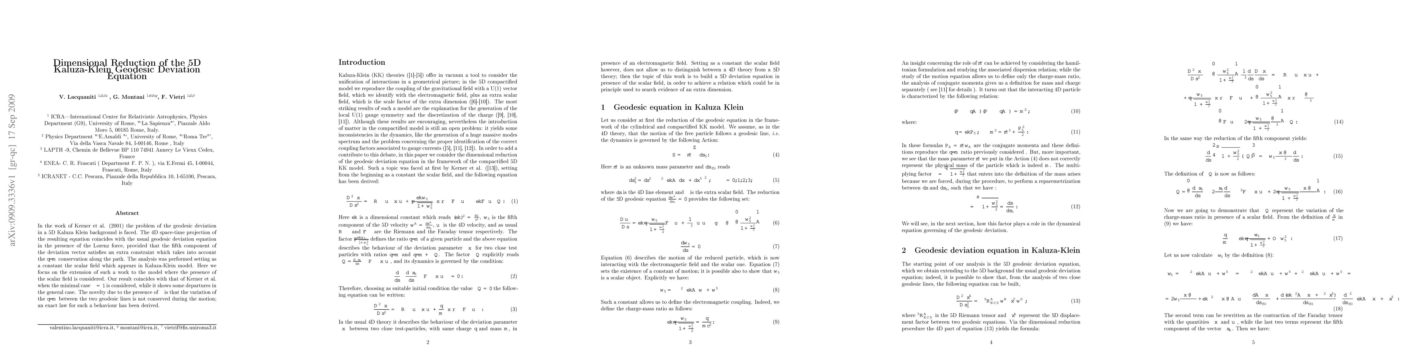 In the work of Kerner et al. (2001) the problem of the geodesic deviation in a 5D Kaluza Klein background is faced. The 4D space-time projection of the resulting equation coincides with the usual geodesic deviation equation in the presence of the Lorenz force, provided that the fifth component of the deviation vector satisfies an extra constraint which takes into account the $q/m$ conservation along the path. The analysis was performed setting as a constant the scalar field which appears in Kaluza-Klein model. Here we focus on the extension of such a work to the model where the presence of the scalar field is considered. Our result coincides with that of Kerner et al. when the minimal case $\phi=1$ is considered, while it shows some departures in the general case. The novelty due to the presence of $\phi$ is that the variation of the $q/m$ between the two geodesic lines is not conserved during the motion; an exact law for such a behaviour has been derived.