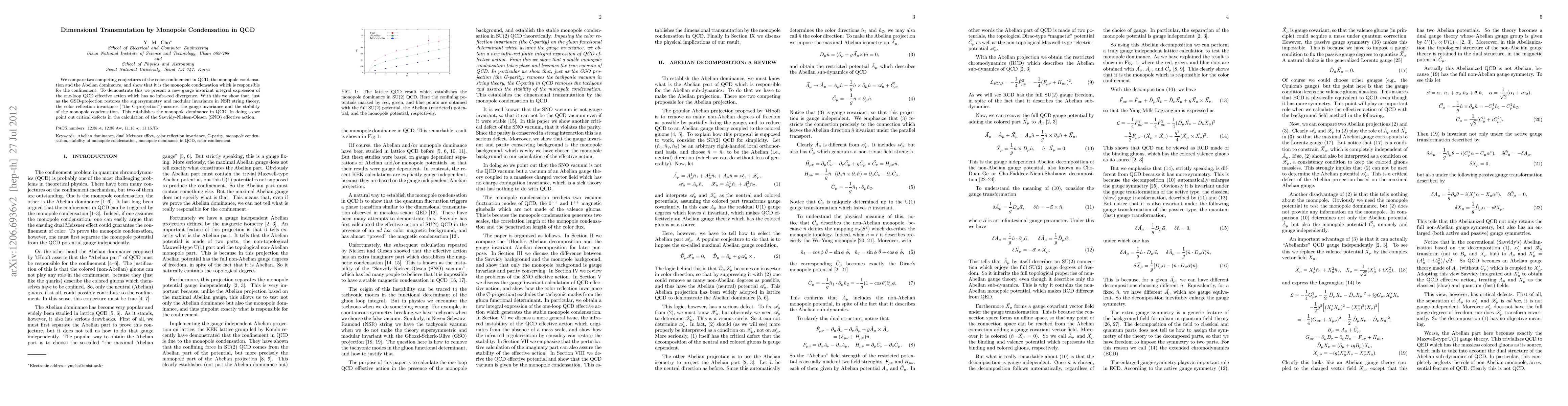 We compare two competing conjectures of the color confinement in QCD, the monopole condensation and the Abelian dominance, and show that it is the monopole condensation which is responsible for the confinement. To demonstrate this we present a new gauge invariant integral expression of the one-loop QCD effective action which has no infra-red divergence. With this we show that, just as the GSO-projection restores the supersymmetry and modular invariance in NSR string theory, the color reflection invariance ("the C-projection") assures the gauge invariance and the stability of the monopole condensation. This establishes the monopole dominance in QCD. In doing so we point out critical defects in the calculation of the Savvidy-Nielsen-Olesen (SNO) effective action.