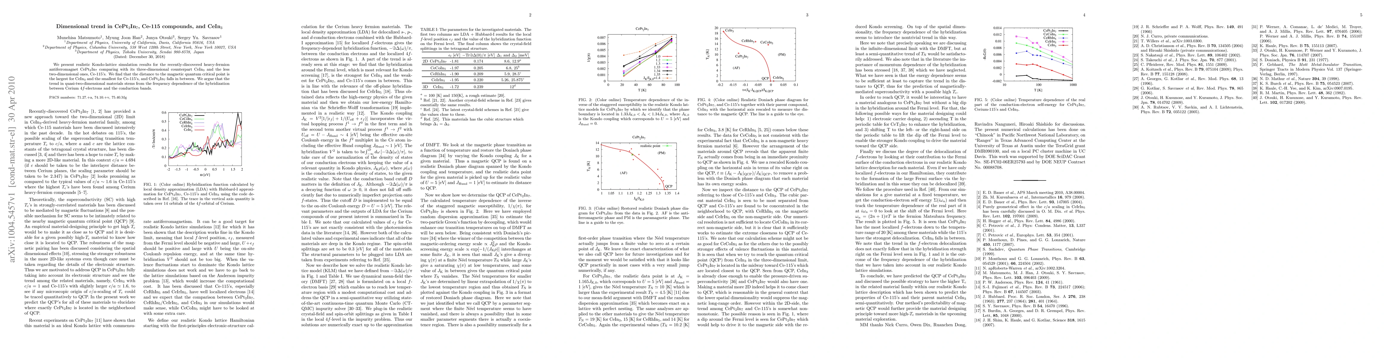 This study uses Kondo-lattice simulations to compare the dimensional trends in CePt2In7, CeIn3, and Ce-115 compounds, finding that CeIn3 is farthest from the magnetic quantum critical point, while Ce-115's is closest, with CePt2In7 in between. The trend is attributed to the frequency dependence of hybridization between Cerium 4f-electrons and conduction bands.