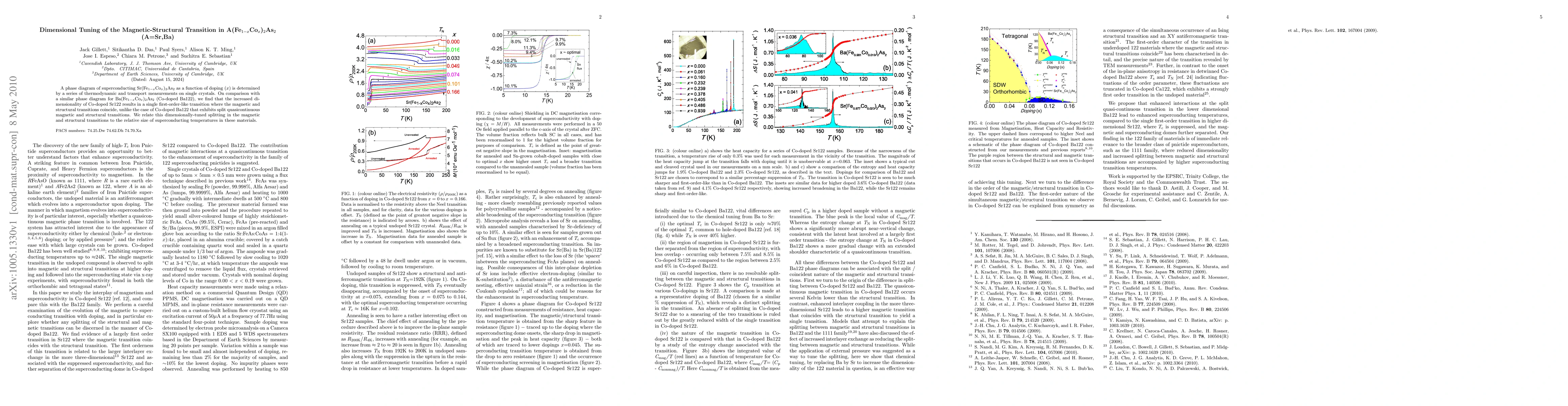 This paper investigates the magnetic-structural transition in Co-doped Sr and Ba iron arsenide superconductors, finding that Sr122 shows a single first-order-like transition where these transitions coincide, whereas Ba122 displays separate quasicontinuous transitions. The differing dimensionality and superconducting temperatures in these materials are linked to this transition behavior.