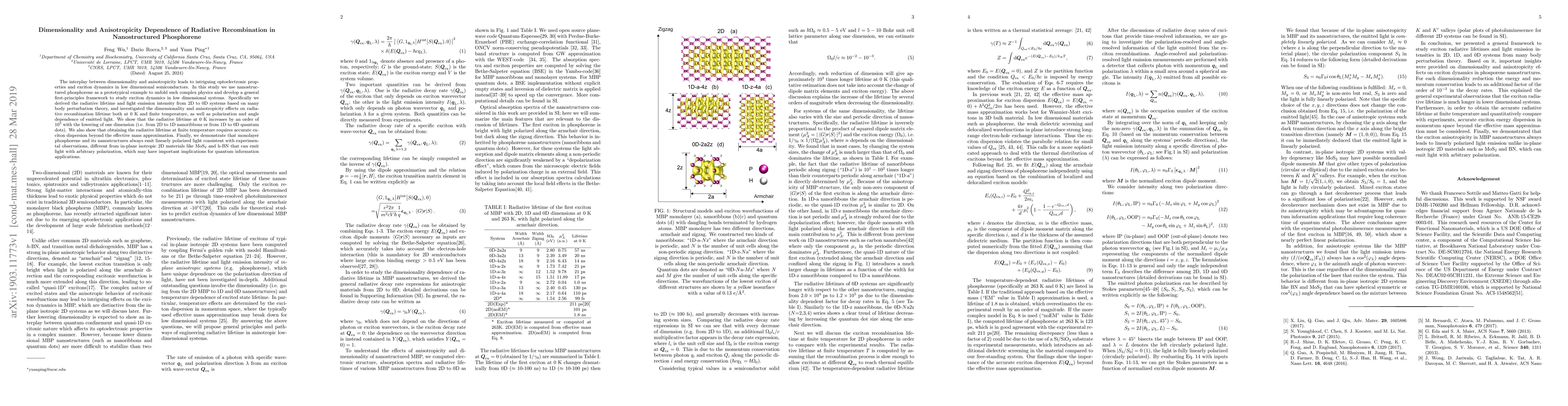 This study explores the impact of dimensionality and anisotropicity on radiative recombination in nanostructured phosphorene using a first-principles framework. It reveals that the radiative recombination lifetime increases significantly with reduced dimensions and highlights the importance of accurate exciton dispersion for finite temperature calculations.
