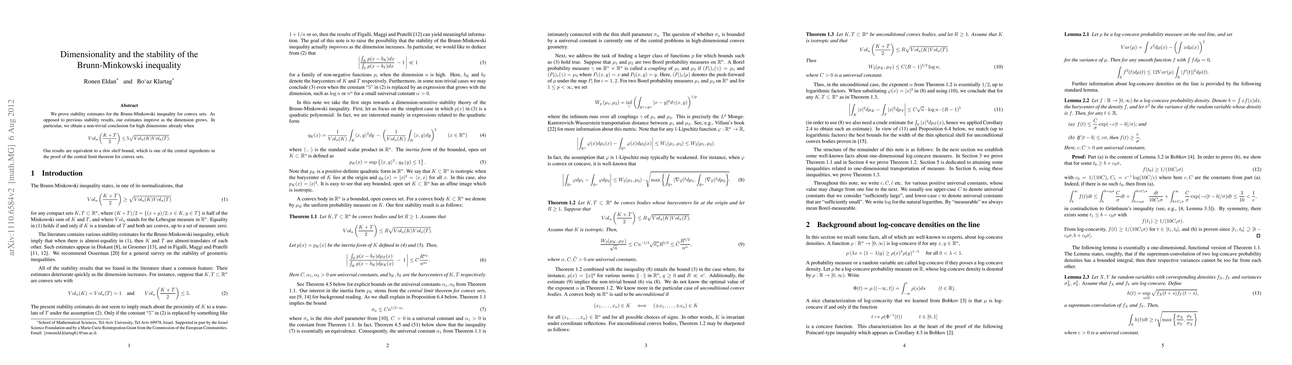 The paper proves improved stability estimates for the Brunn-Minkowski inequality that enhance with increasing dimension, providing a crucial component for the central limit theorem for convex sets. This result is linked to a thin shell bound.
