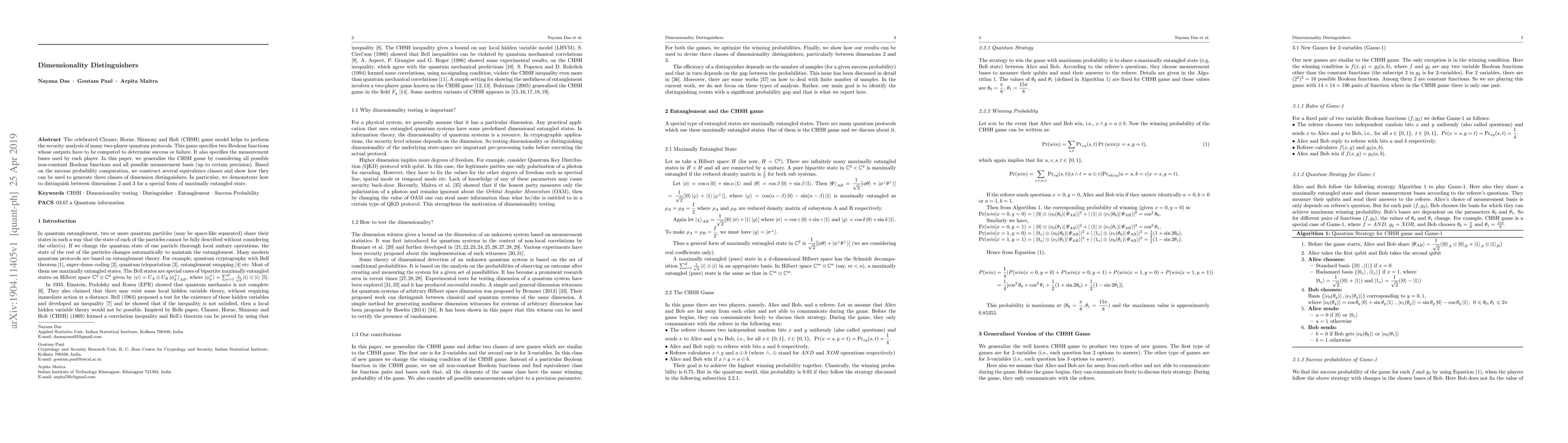 Researchers generalized the CHSH game to consider all possible Boolean functions and measurement bases, developing a method to distinguish between dimensions 2 and 3 for a specific type of quantum state.