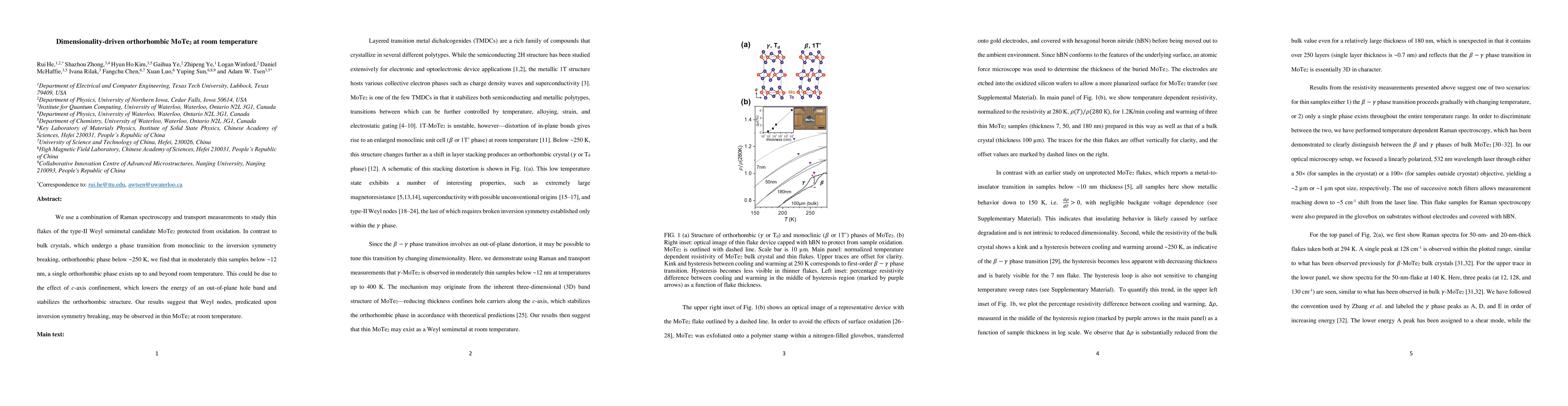 This study reveals that thin flakes of MoTe2 maintain a stable orthorhombic phase at room temperature, unlike bulk crystals which transition to this phase below ~250 K. The stabilization is attributed to c-axis confinement effects, suggesting potential for observing Weyl nodes in thin MoTe2 at room temperature.