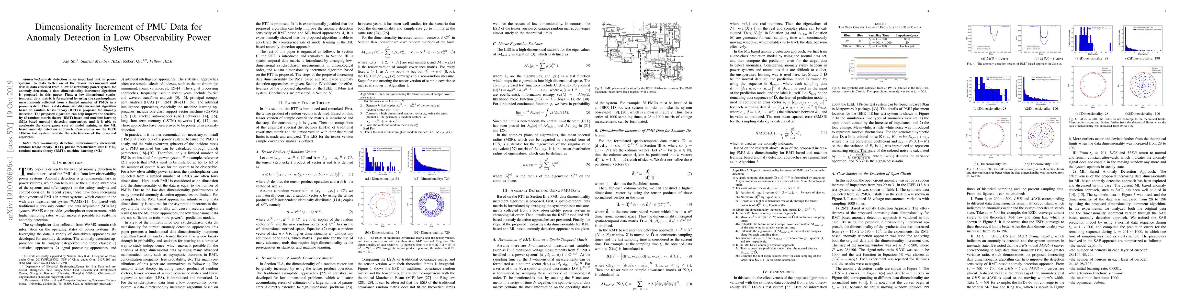 This paper proposes a data dimensionality increment algorithm based on random tensor theory to enhance anomaly detection in low observability power systems using PMU data. The method improves the sensitivity of anomaly detection and accelerates model training, validated through case studies on the IEEE 118-bus system.