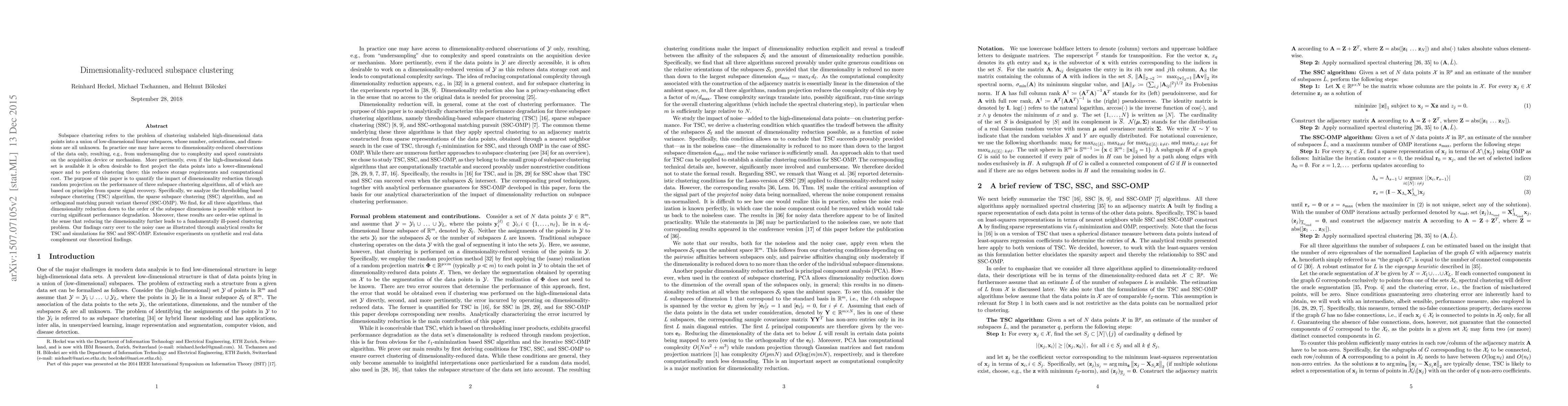 This paper investigates the impact of dimensionality reduction via random projection on the performance of three subspace clustering algorithms: TSC, SSC, and SSC-OMP. It finds that reducing dimensions to the order of subspace dimensions preserves clustering performance without significant degradation, while further reductions lead to ill-posed problems. Theoretical and experimental results support these findings.
