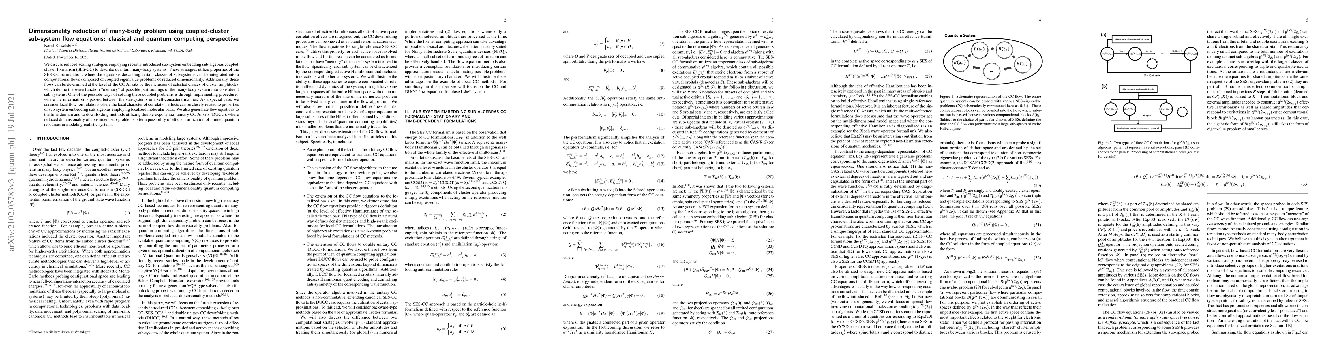 Researchers introduce a method to reduce complexity of many-body systems using coupled-cluster sub-system flow equations, enabling efficient modeling with limited quantum resources.