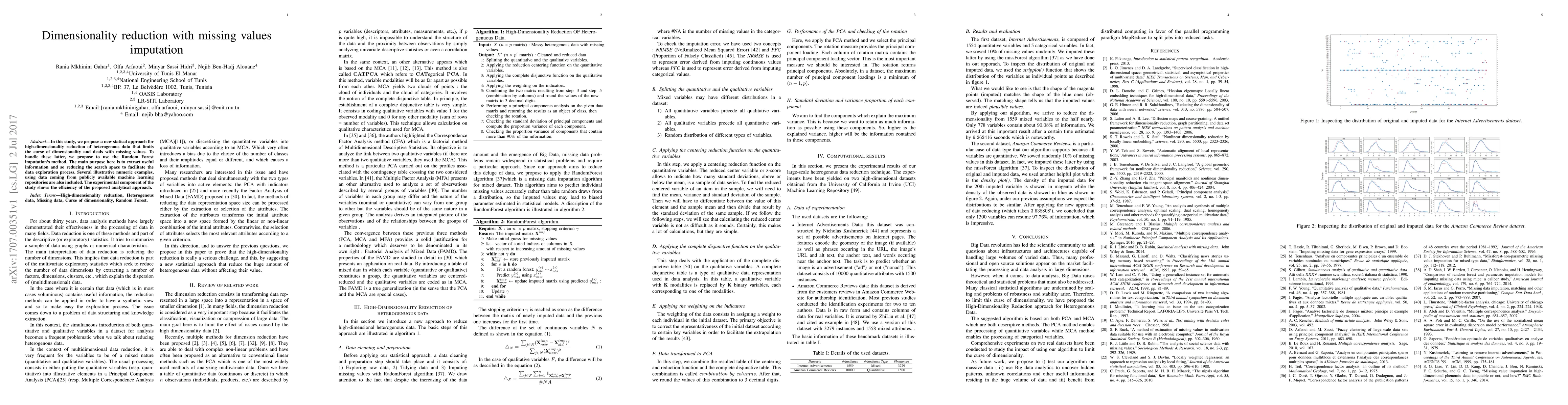 This research introduces a novel statistical method for reducing high-dimensional heterogeneous data, addressing the curse of dimensionality and missing values using Random Forest imputation. Experimental results demonstrate the approach's effectiveness with examples from public machine learning repositories.