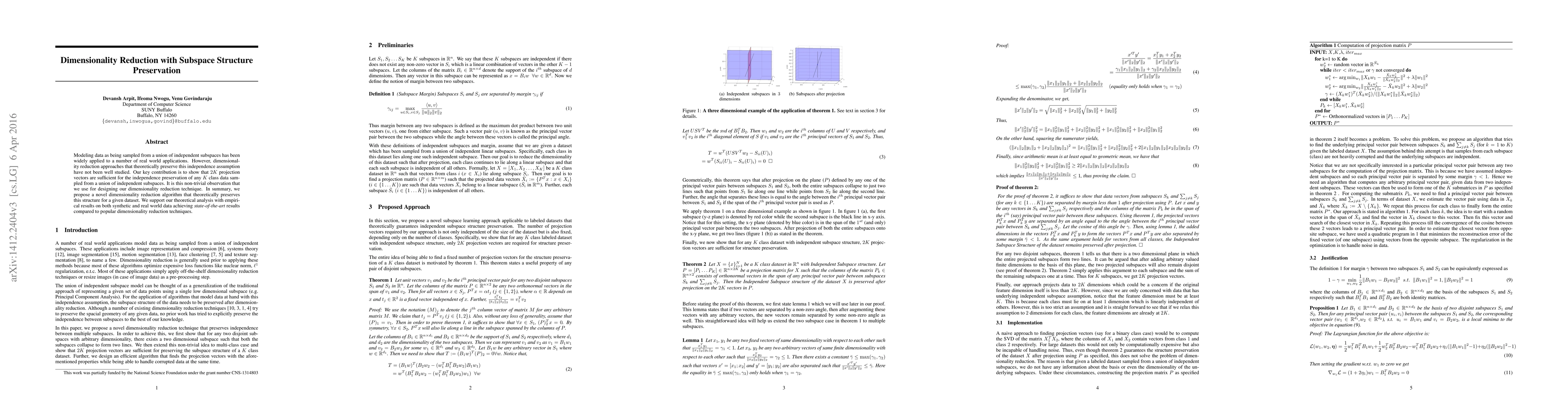 This paper proposes a novel dimensionality reduction technique that preserves the subspace structure of data sampled from a union of independent subspaces. The authors demonstrate that $2K$ projection vectors are sufficient for independence preservation in $K$ class data, leading to a new algorithm that achieves state-of-the-art results on both synthetic and real-world datasets.