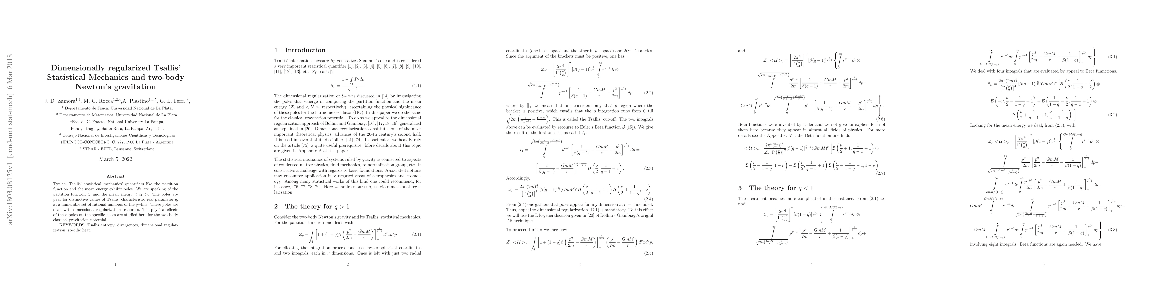 Research investigates how poles in Tsallis statistical mechanics affect specific heats in two-body classical gravitation potential when using dimensional regularization.