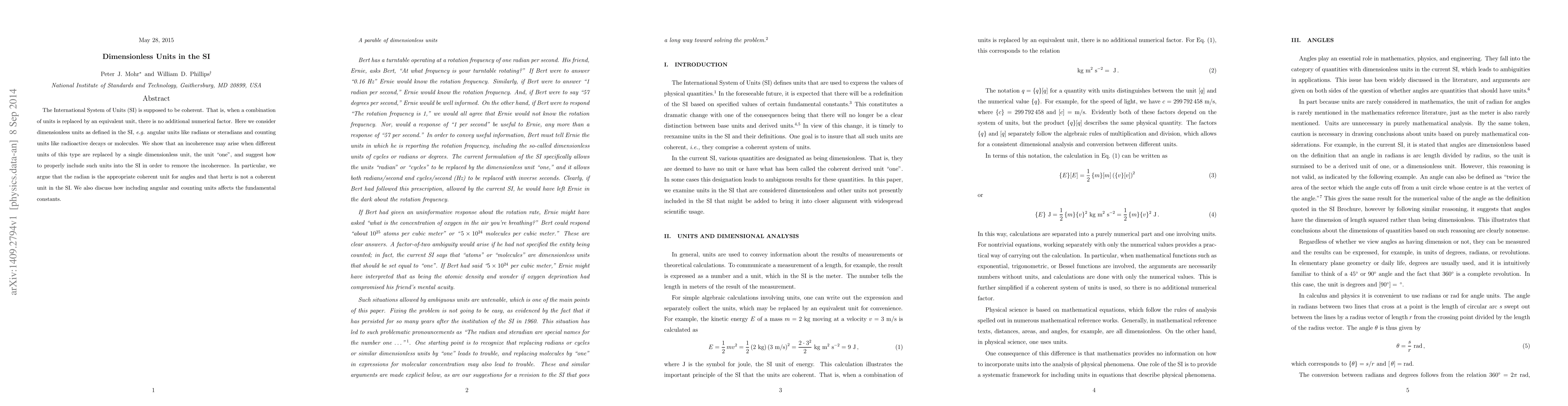 This paper examines the coherence of dimensionless units in the SI, highlighting inconsistencies when different units like radians and hertz are used. It proposes that radians should be the coherent unit for angles and suggests reforms to eliminate incoherence, affecting the treatment of fundamental constants.
