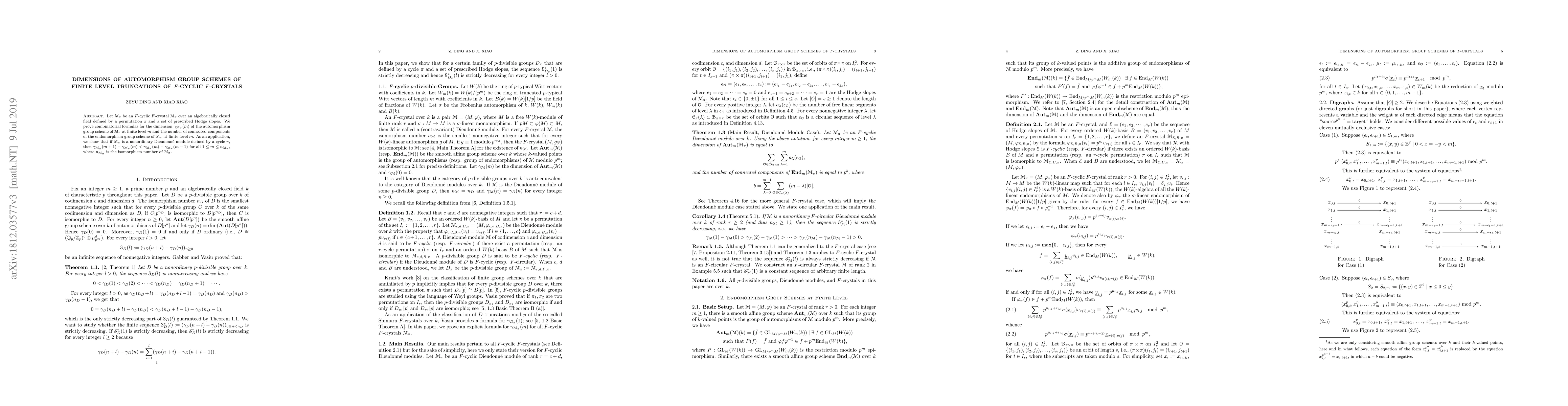 Let $\mathcal{M}_{\pi}$ be an $F$-cyclic $F$-crystal $\mathcal{M}_{\pi}$ over an algebraically closed field defined by a permutation $\pi$ and a set of prescribed Hodge slopes. We prove combinatorial formulas for the dimension $\gamma_{\mathcal{M}_{\pi}}(m)$ of the automorphism group scheme of $\mathcal{M}_{\pi}$ at finite level $m$ and the number of connected components of the endomorphism group scheme of $\mathcal{M}_{\pi}$ at finite level $m$. As an application, we show that if $\mathcal{M}_{\pi}$ is a nonordinary Dieudonn\'e module defined by a cycle $\pi$, then $\gamma_{\mathcal{M}_{\pi}}(m+1) - \gamma_{\mathcal{M}_{\pi}}(m) < \gamma_{\mathcal{M}_{\pi}}(m) - \gamma_{\mathcal{M}_{\pi}}(m-1)$ for all $1 \leq m \leq n_{\mathcal{M}_{\pi}}$, where $n_{\mathcal{M}_{\pi}}$ is the isomorphism number of $\mathcal{M}_{\pi}$.