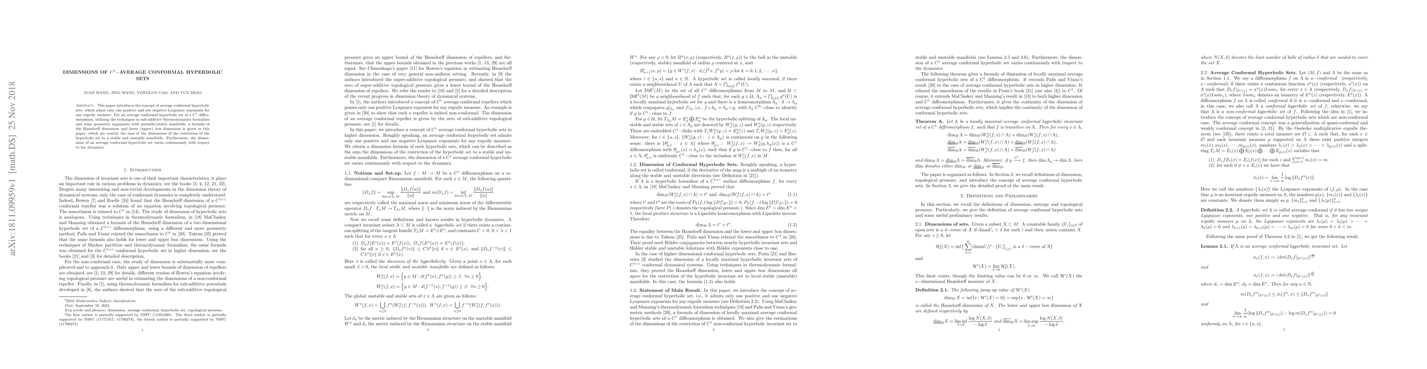 This paper defines average conformal hyperbolic sets with one positive and one negative Lyapunov exponent for any ergodic measure. It provides a formula for the Hausdorff and box dimensions of such sets in C1 diffeomorphisms, showing they are the sum of dimensions of their stable and unstable manifolds.