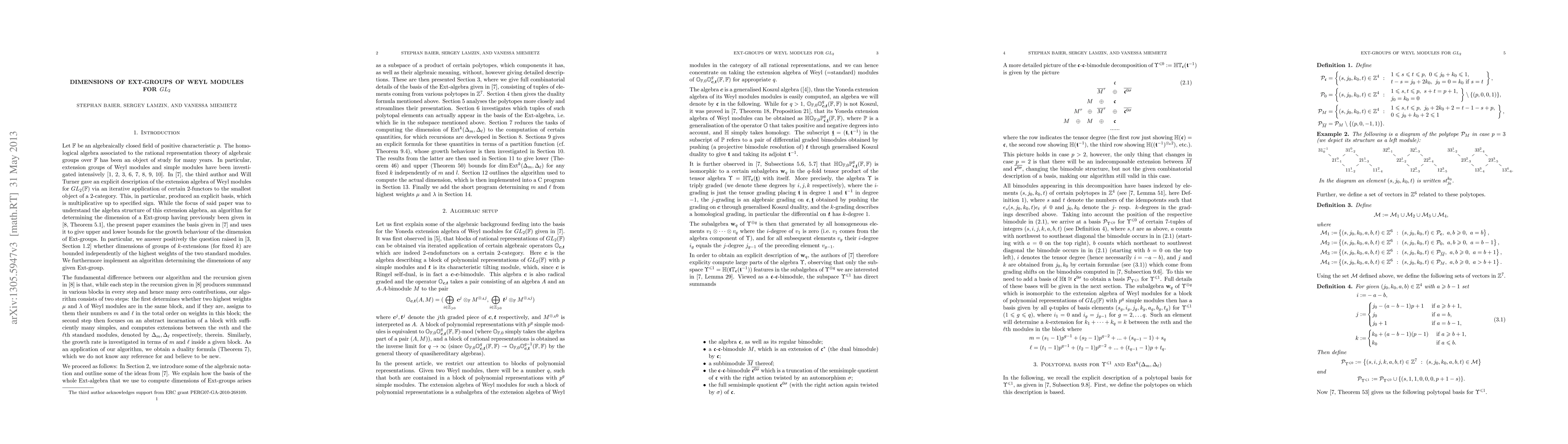 Let F be an algebraically closed field of positive characteristic p. The third author and Will Turner gave an explicit description of the extension algebra of Weyl modules for GL_2(F). This, in particular, produced an explicit basis. We examine this basis and use it to give upper and lower bounds for the growth behaviour of the dimensions of Ext-groups. Moreover, we implement an algorithm to determine the dimension of any given Ext-group.