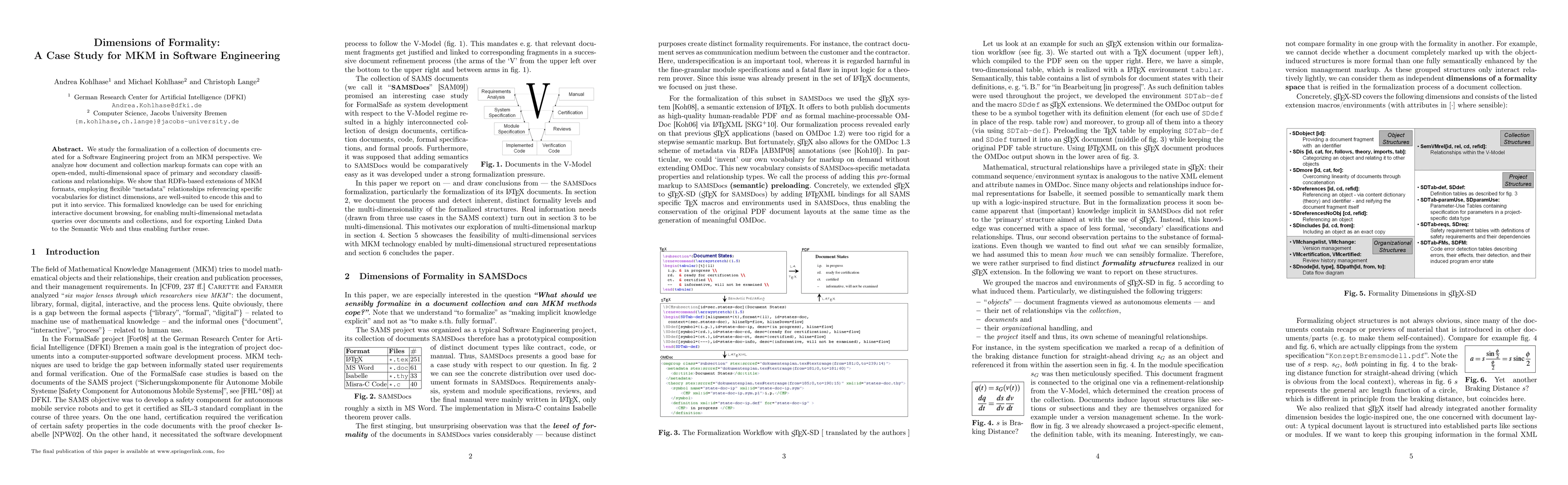 We study the formalization of a collection of documents created for a Software Engineering project from an MKM perspective. We analyze how document and collection markup formats can cope with an open-ended, multi-dimensional space of primary and secondary classifications and relationships. We show that RDFa-based extensions of MKM formats, employing flexible "metadata" relationships referencing specific vocabularies for distinct dimensions, are well-suited to encode this and to put it into service. This formalized knowledge can be used for enriching interactive document browsing, for enabling multi-dimensional metadata queries over documents and collections, and for exporting Linked Data to the Semantic Web and thus enabling further reuse.