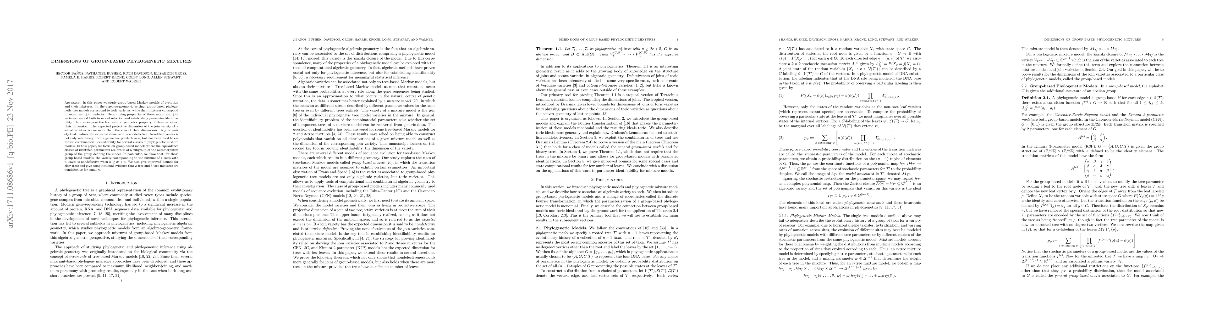 This paper investigates the dimensions of group-based phylogenetic mixture models, showing that mixtures of $r$ trees with $n$ leaves are nondefective when $n \geq 2r+5$. It also provides improved bounds for claw trees and computational evidence supporting nondefectiveness for small $n$ in 2-tree and 3-tree mixtures.
