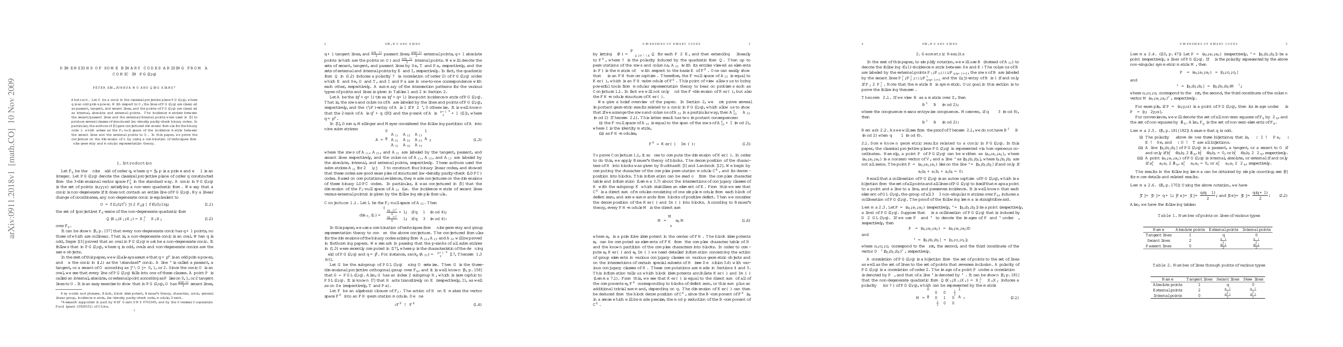 This paper proves a conjecture regarding the dimension of a binary code $\mathcal{L}$ derived from the incidence matrix between secant lines and external points of a conic in $PG(2,q)$. The proof employs methods from finite geometry and modular representation theory.