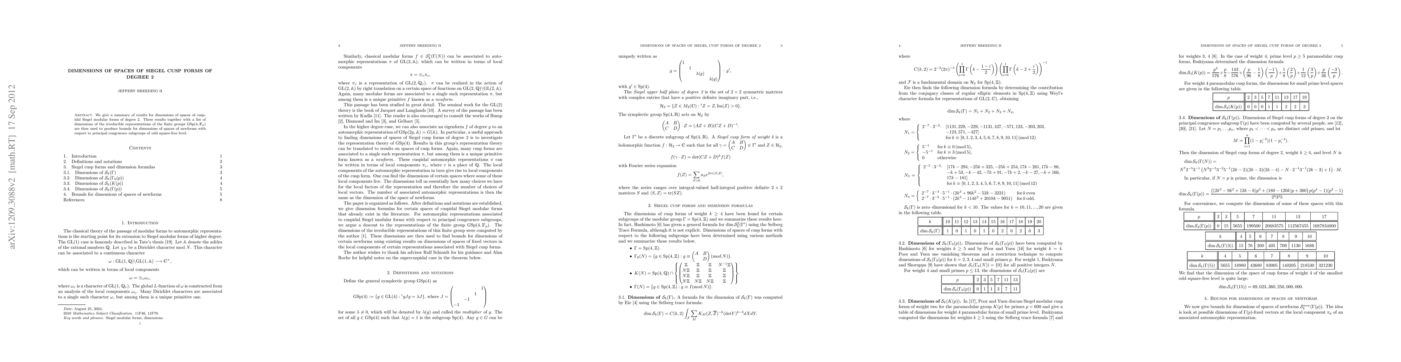 We give a summary of results for dimensions of spaces of cuspidal Siegel modular forms of degree 2. These results together with a list of dimensions of the irreducible representations of the finite groups GSp(4,Fp) are then used to produce bounds for dimensions of spaces of newforms with respect to principal congruence subgroups of odd square-free level.