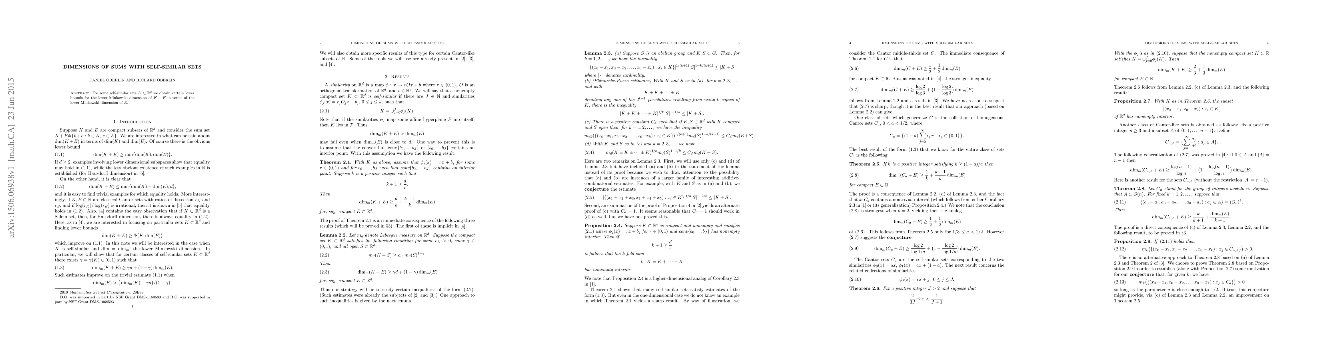 For some self-similar sets K in d-dimensional Euclidean space we obtain certain lower bounds for the lower Minkowski dimension of K+E in terms of the lower Minkowski dimension of E.