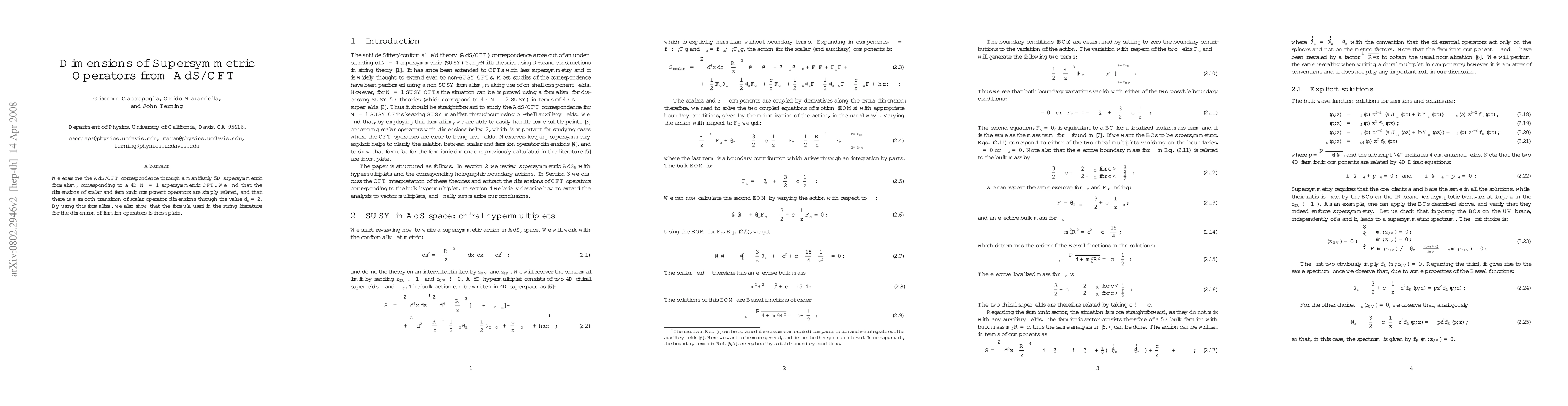 This paper explores the AdS/CFT correspondence via a 5D supersymmetric framework, revealing a direct relationship between the dimensions of scalar and fermionic operators in a 4D N=1 supersymmetric CFT, and identifies an incomplete formula in the string literature for fermion operator dimensions.
