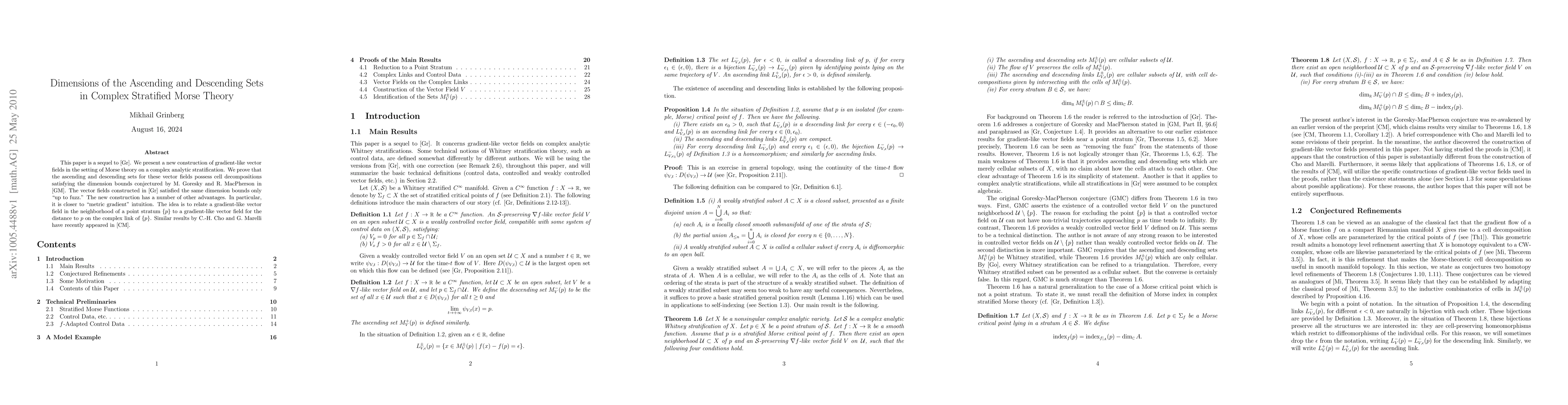 This paper constructs gradient-like vector fields in complex stratified Morse theory and proves that their ascending and descending sets have cell decompositions that meet the dimension bounds conjectured by Goresky and MacPherson. This work complements recent findings by Cho and Marelli.
