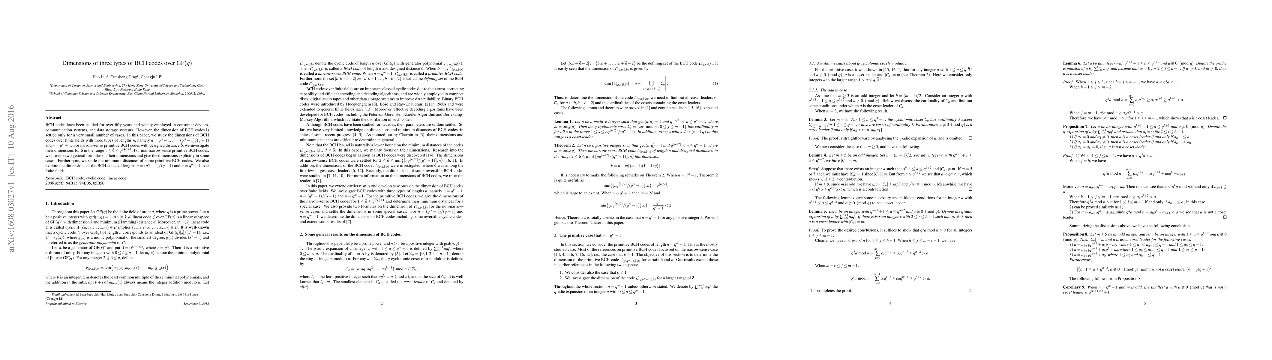 This paper investigates the dimensions of three types of BCH codes over finite fields with specific lengths, providing general formulas and explicit dimensions for non-narrow-sense primitive BCH codes, and settling the minimum distances for some primitive BCH codes.