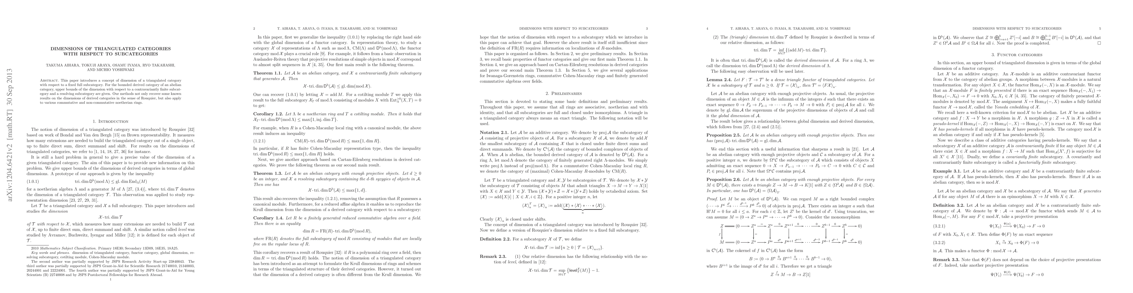This paper defines the dimension of a triangulated category relative to a full subcategory, providing upper bounds for bounded derived categories in relation to contravariantly finite and resolving subcategories, and extending known results to various commutative and non-commutative noetherian rings.