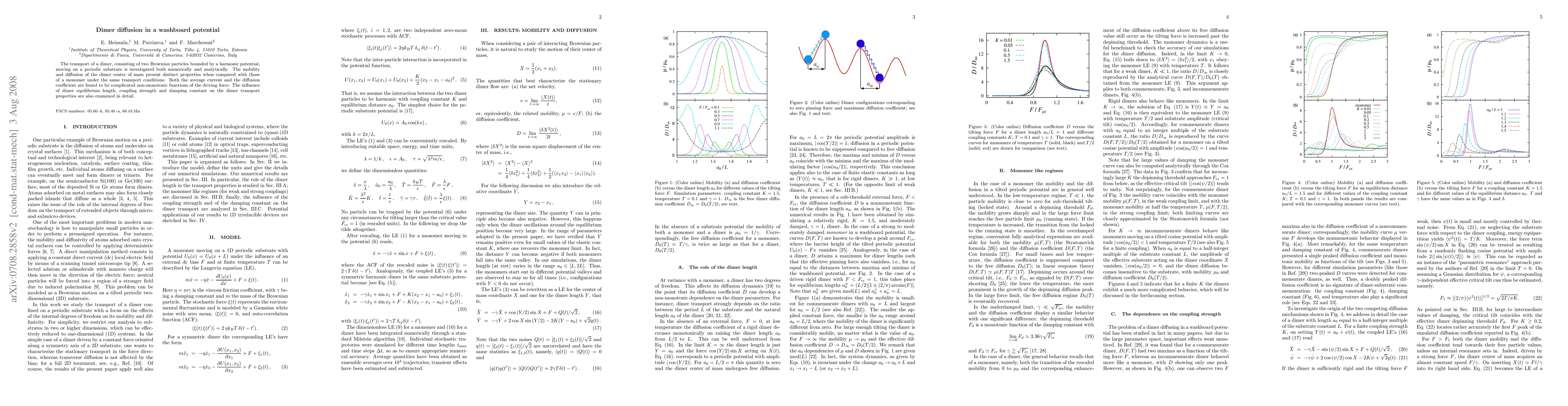 This paper explores the transport dynamics of a dimer, made up of two Brownian particles connected by a harmonic potential, on a periodic substrate. The study reveals that the mobility and diffusion of the dimer's center of mass differ significantly from those of a single particle, with transport properties depending non-monotonically on the driving force and being influenced by factors like dimer length, coupling strength, and damping.