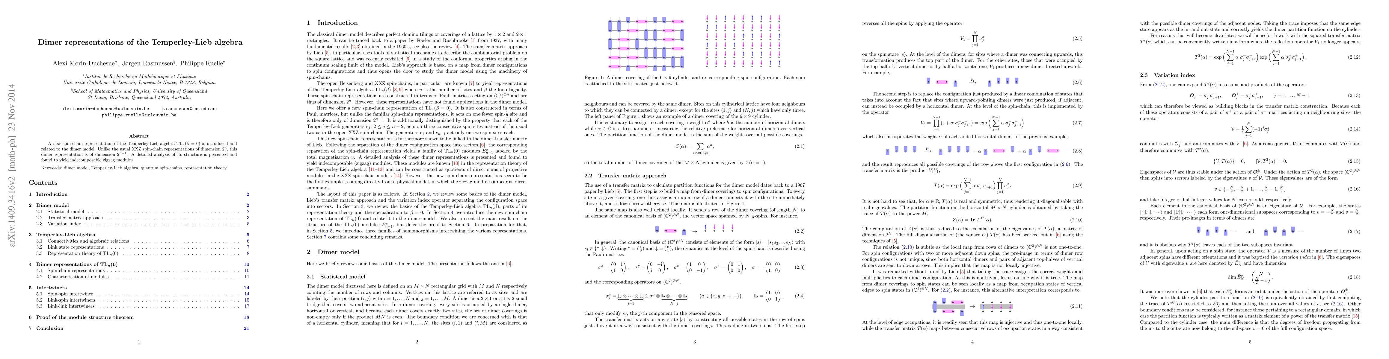 This paper introduces a new dimer representation of the Temperley-Lieb algebra $TL_n(\beta=0)$ with dimension $2^{n-1}$, contrasting the usual $2^n$ dimension of XXZ spin-chain representations. The study reveals that this representation yields indecomposable zigzag modules.