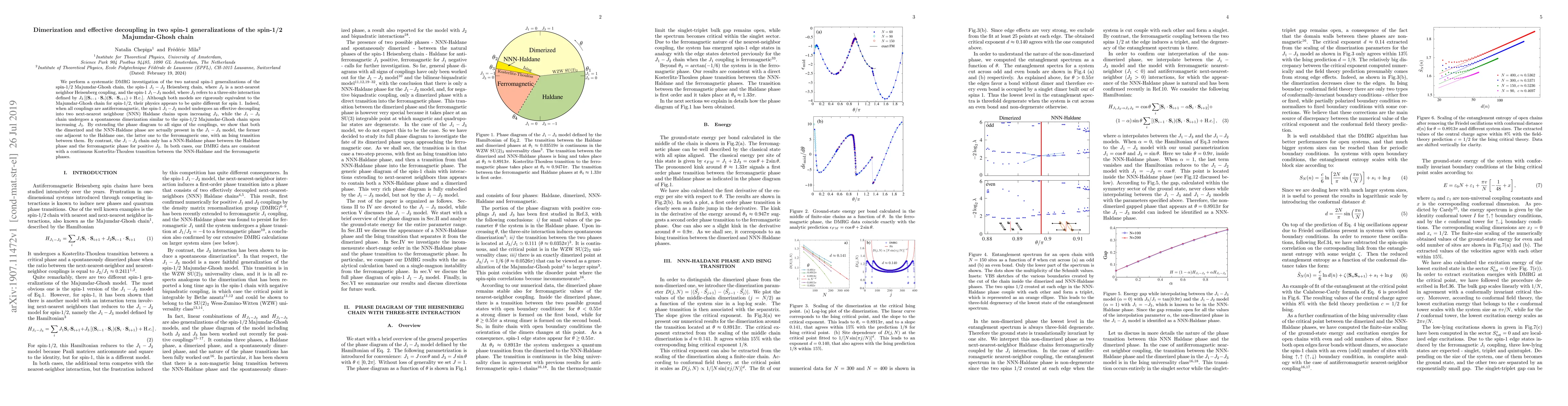 This paper investigates two spin-1 generalizations of the Majumdar-Ghosh chain using DMRG, revealing distinct behaviors: the $J_1-J_2$ model exhibits effective decoupling into two Haldane chains, while the $J_1-J_3$ model undergoes spontaneous dimerization akin to the spin-1/2 chain, with both phases separated by an Ising transition.
