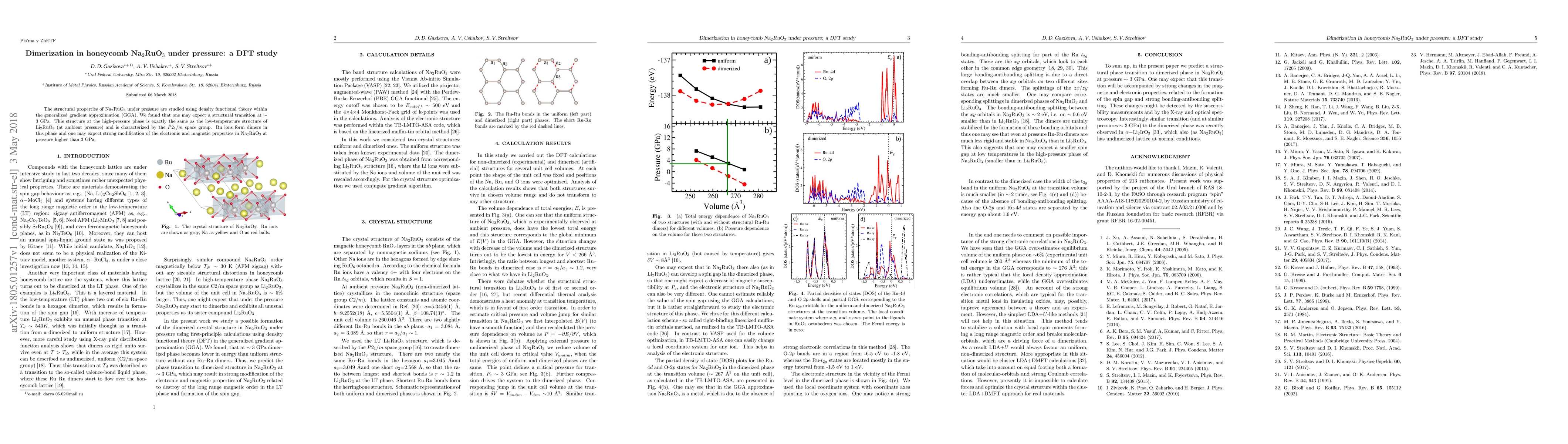 Researchers used density functional theory to study Na2RuO3 under pressure, finding a structural transition at 3 GPa, where Ru ions form dimers in a P21/m phase similar to Li2RuO3's low-temperature structure.