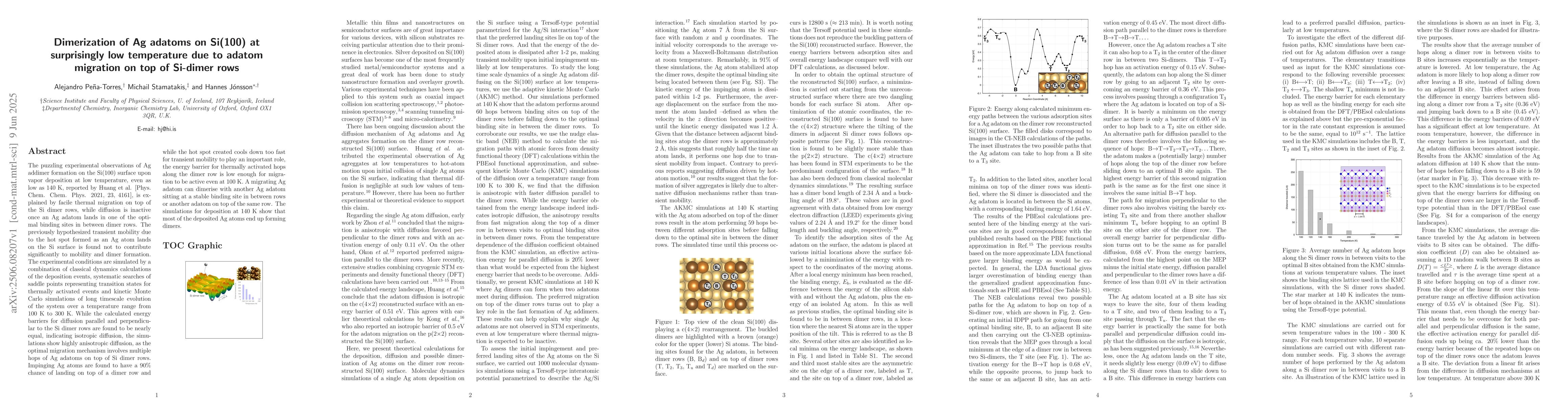 Researchers found that silver adatoms on silicon can form dimers at low temperatures due to thermal migration along dimer rows, not diffusion as previously thought.