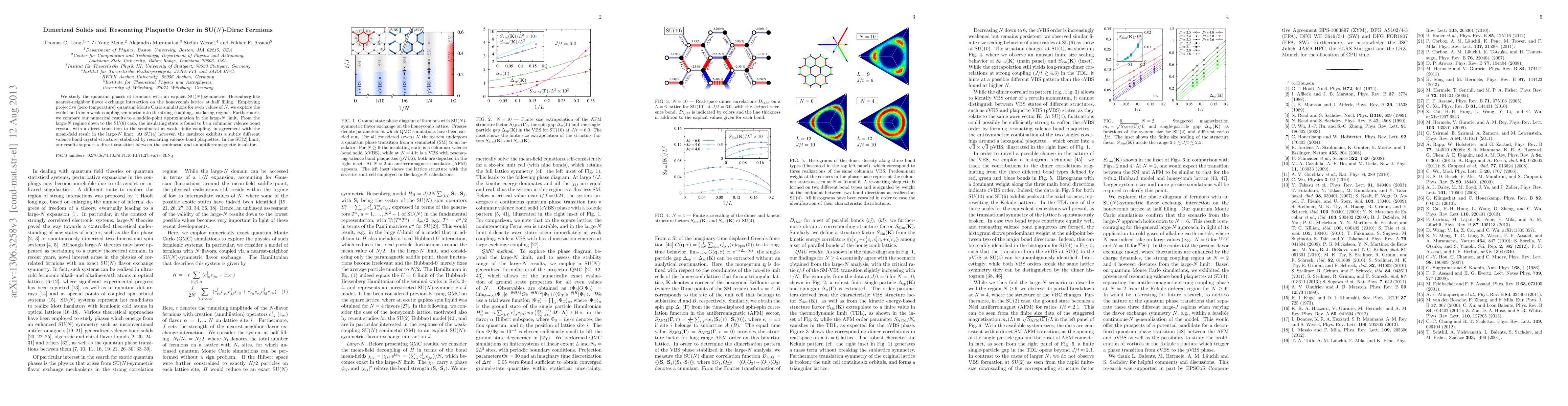 We study the quantum phases of fermions with an explicit SU(N)-symmetric, Heisenberg-like nearest-neighbor flavor exchange interaction on the honeycomb lattice at half-filling. Employing projective (zero temperature) quantum Monte Carlo simulations for even values of N, we explore the evolution from a weak-coupling semimetal into the strong-coupling, insulating regime. Furthermore, we compare our numerical results to a saddle-point approximation in the large-N limit. From the large-N regime down to the SU(6) case, the insulating state is found to be a columnar valence bond crystal, with a direct transition to the semimetal at weak, finite coupling, in agreement with the mean-field result in the large-N limit. At SU(4) however, the insulator exhibits a subtly different valence bond crystal structure, stabilized by resonating valence bond plaquettes. In the SU(2) limit, our results support a direct transition between the semimetal and an antiferromagnetic insulator.