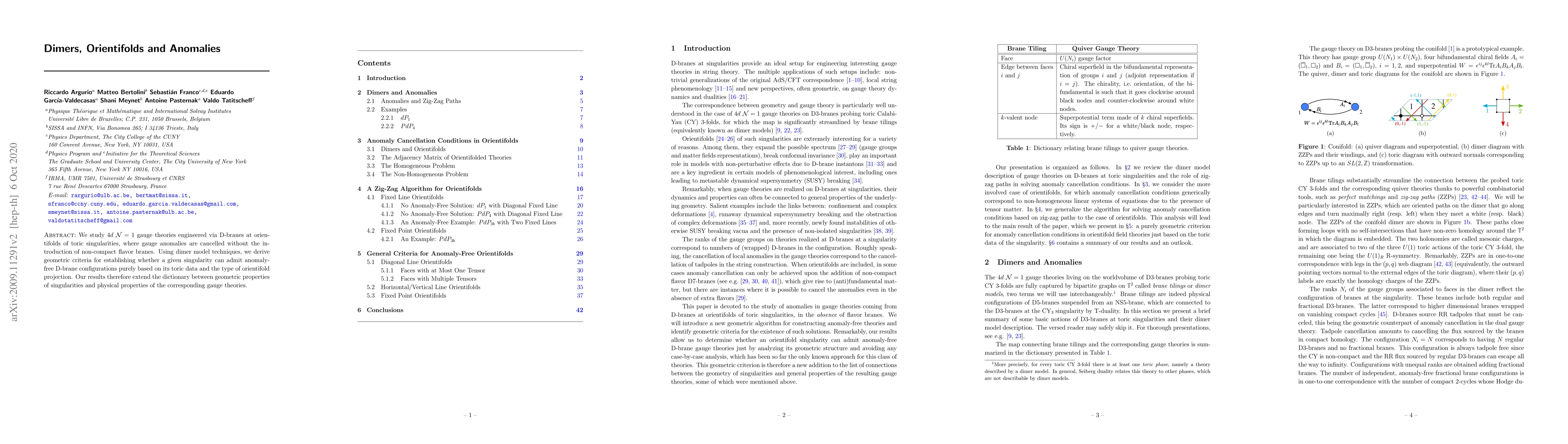 Researchers study 4d gauge theories engineered via D-branes at orientifolds of toric singularities to cancel anomalies without non-compact flavor branes, deriving geometric criteria for anomaly-free configurations based on singularity data.