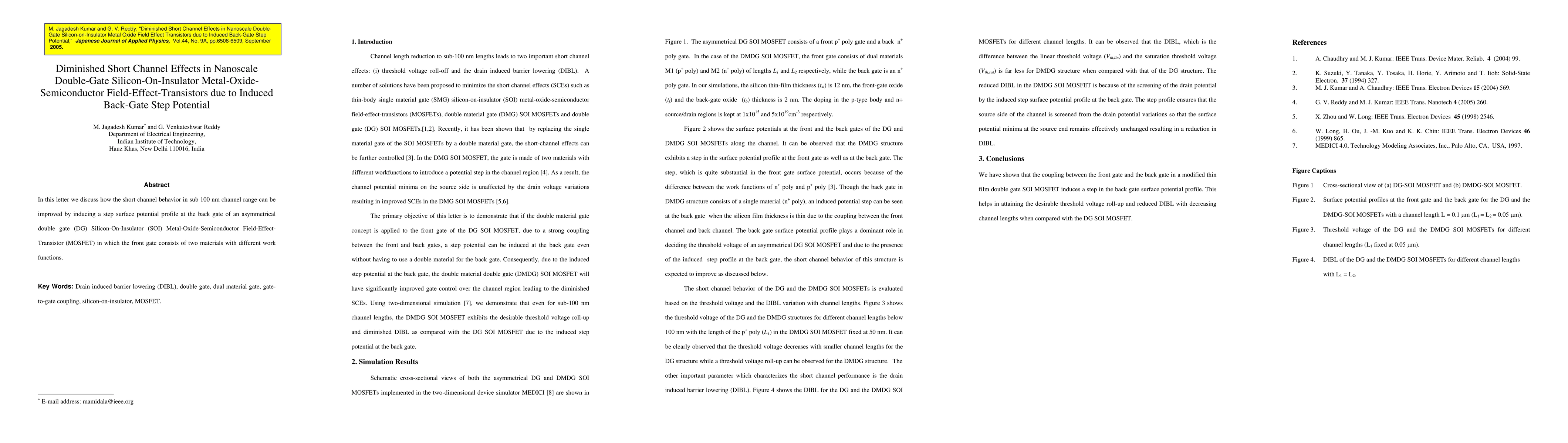 This paper explores how inducing a step surface potential profile at the back gate of a nanoscale double-gate Silicon-On-Insulator MOSFET can mitigate short channel effects, enhancing performance in sub 100 nm channels. The asymmetrical double gate design utilizes front gates made of materials with different work functions.