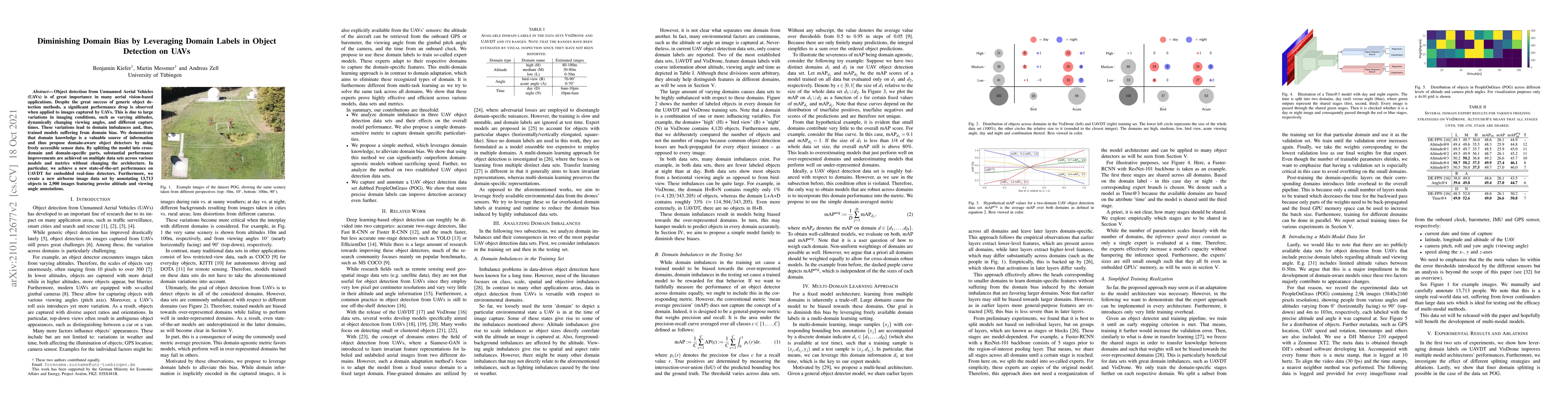 This paper proposes domain-aware object detectors for UAVs that leverage sensor data to mitigate domain bias, achieving substantial performance improvements without altering the model architecture. The approach splits the model into cross-domain and domain-specific parts, resulting in state-of-the-art performance on the UAVDT dataset.