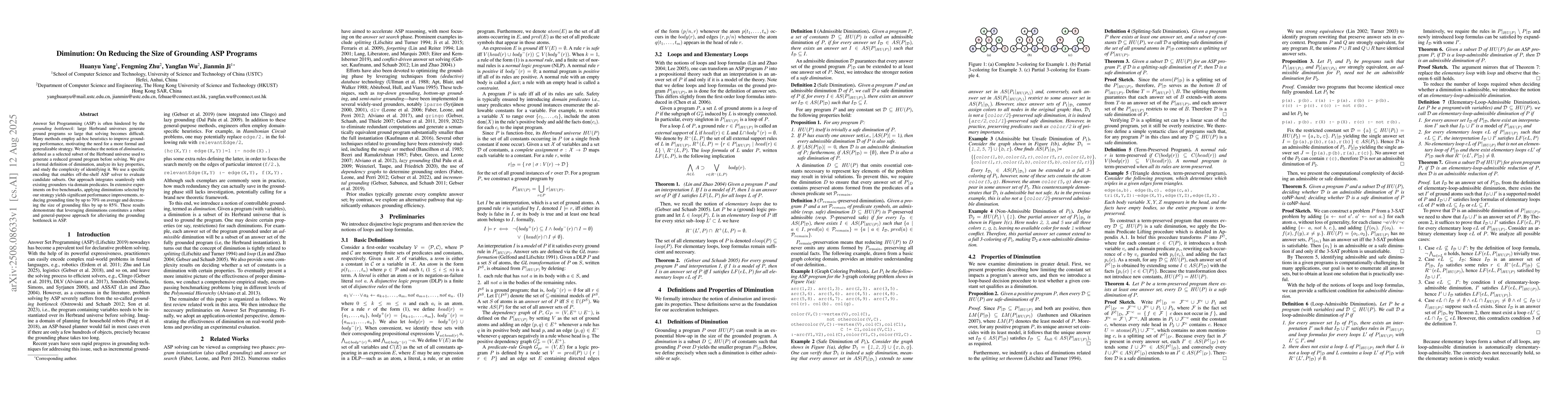 The paper presents the formal definition of diminution, analyzes its properties, and studies the complexity of identifying it, proposing a method to use off-the-shelf ASP solvers to evaluate candidate subsets.