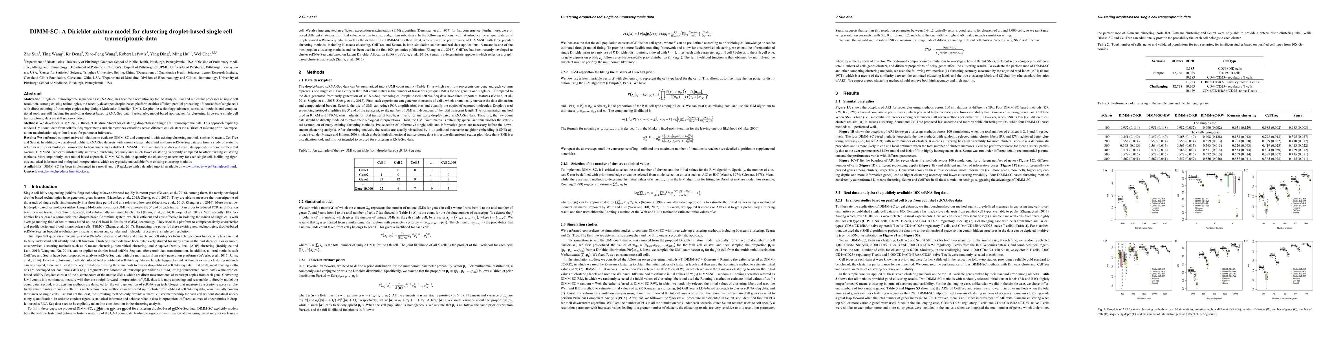 DIMM-SC is a novel Dirichlet mixture model designed for clustering droplet-based single cell transcriptomic data, offering improved clustering accuracy and variability compared to existing methods. The model explicitly accounts for Unique Molecular Identifier counts and provides statistical inference on clustering uncertainty.