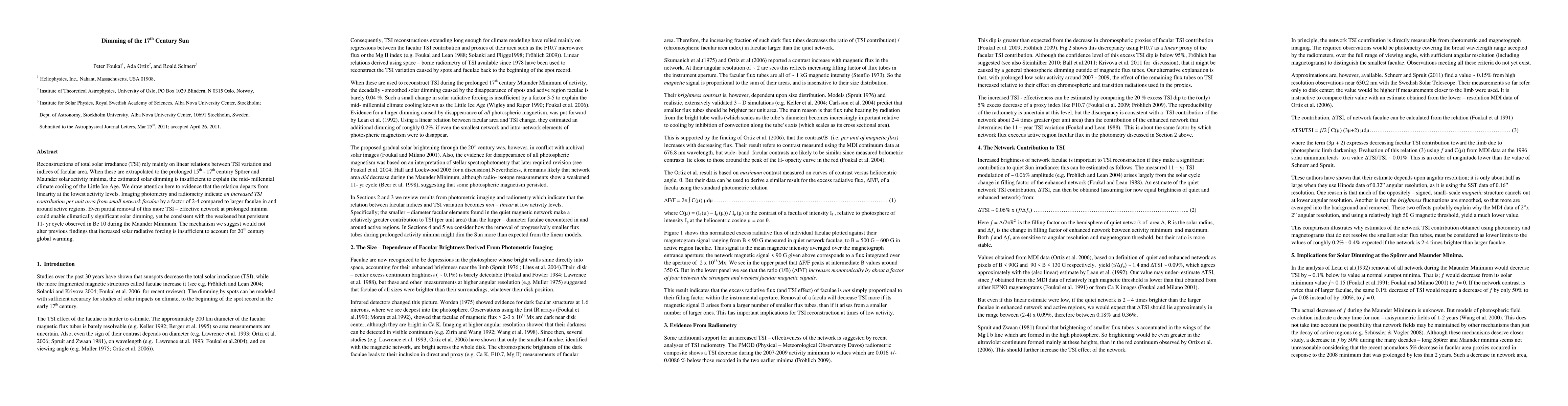 This paper argues that the 17th century solar dimming, during the Maunder Minimum, could be more significant than previously estimated due to a non-linear relationship between solar activity and total solar irradiance, particularly from small network faculae. This could explain the climate cooling of the Little Ice Age without contradicting the solar forcing explanations for 20th-century global warming.