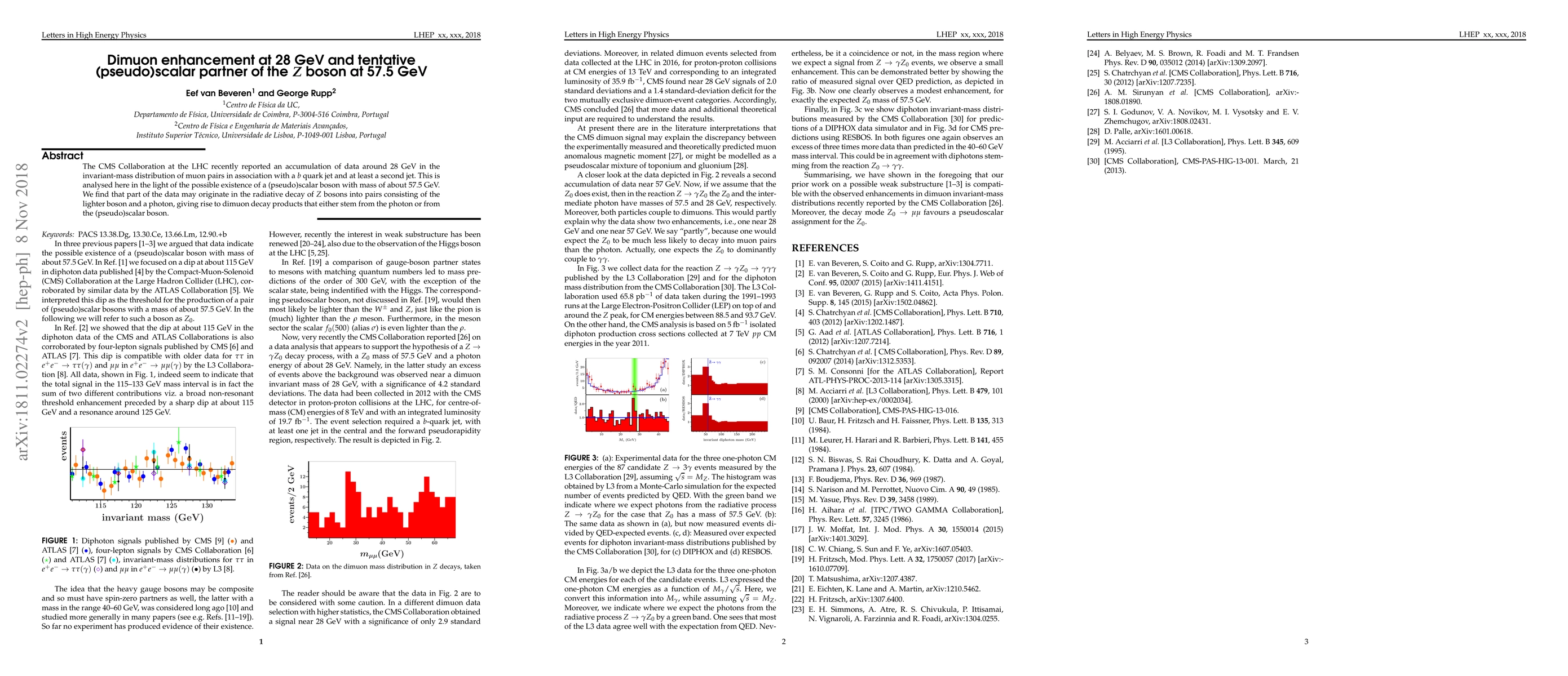The CMS Collaboration at the LHC recently reported an accumulation of data around 28 GeV in the invariant-mass distribution of muon pairs in association with a b quark jet and at least a second jet. This is analysed here in the light of the possible existence of a (pseudo)scalar boson with mass of about 57.5 GeV. We find that part of the data may originate in the radiative decay of Z bosons into pairs consisting of the lighter boson and a photon, giving rise to dimuon decay products that either stem from the photon or from the (pseudo)scalar boson.