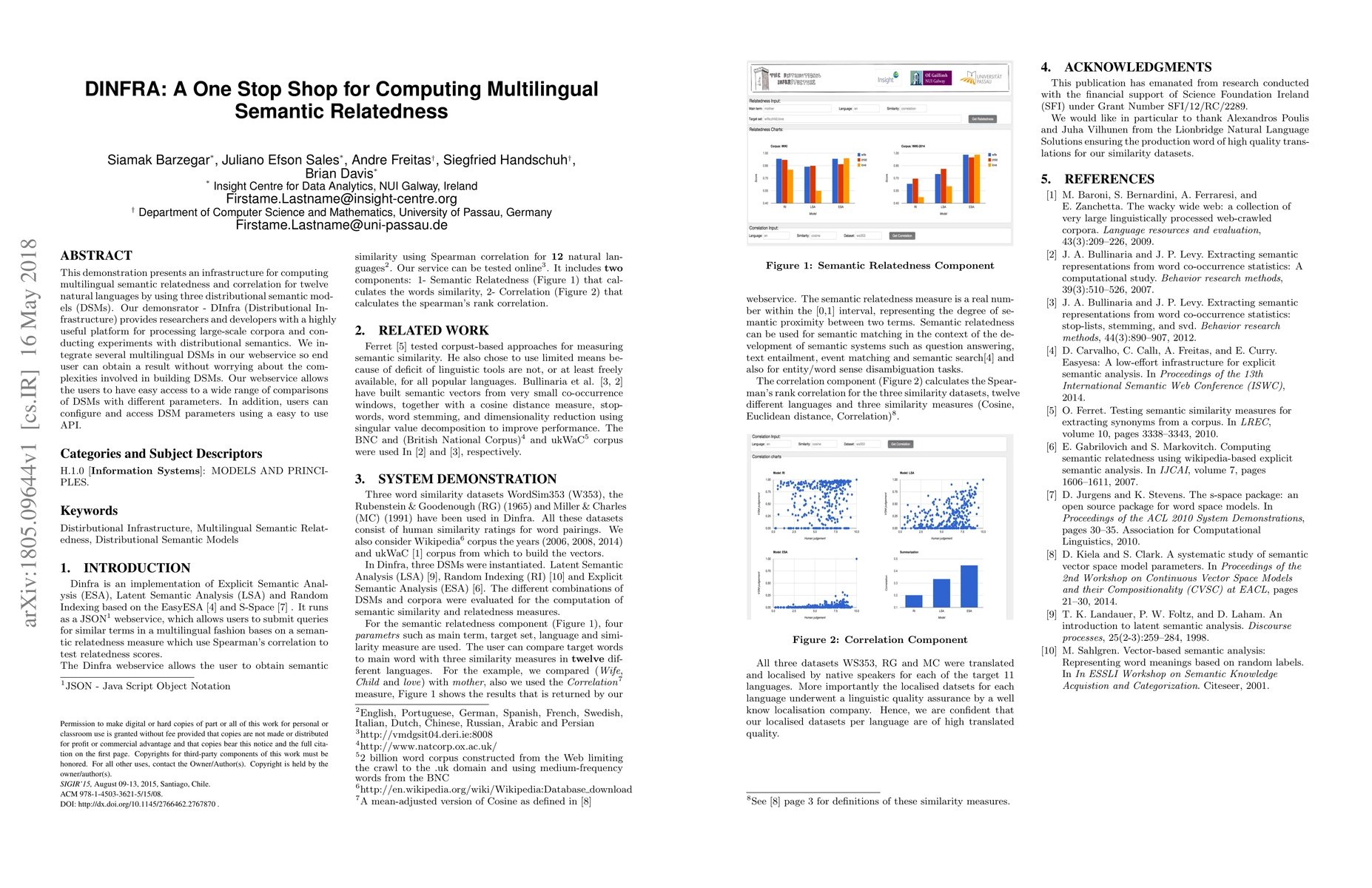 This demonstration presents an infrastructure for computing multilingual semantic relatedness and correlation for twelve natural languages by using three distributional semantic models (DSMs). Our demonsrator - DInfra (Distributional Infrastructure) provides researchers and developers with a highly useful platform for processing large-scale corpora and conducting experiments with distributional semantics. We integrate several multilingual DSMs in our webservice so the end user can obtain a result without worrying about the complexities involved in building DSMs. Our webservice allows the users to have easy access to a wide range of comparisons of DSMs with different parameters. In addition, users can configure and access DSM parameters using an easy to use API.