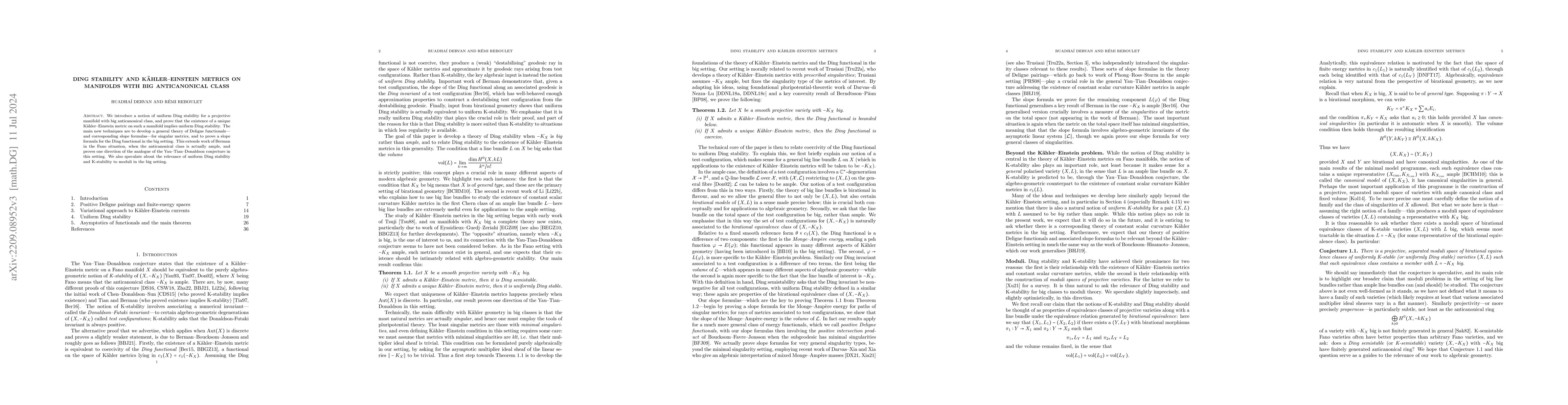This paper establishes a notion of uniform Ding stability for projective manifolds with big anticanonical classes and proves that the existence of a unique Kähler-Einstein metric implies this stability. The authors develop a new theory of Deligne functionals for singular metrics and extend previous results in the Fano setting, contributing to the Yau-Tian-Donaldson conjecture in the big setting.