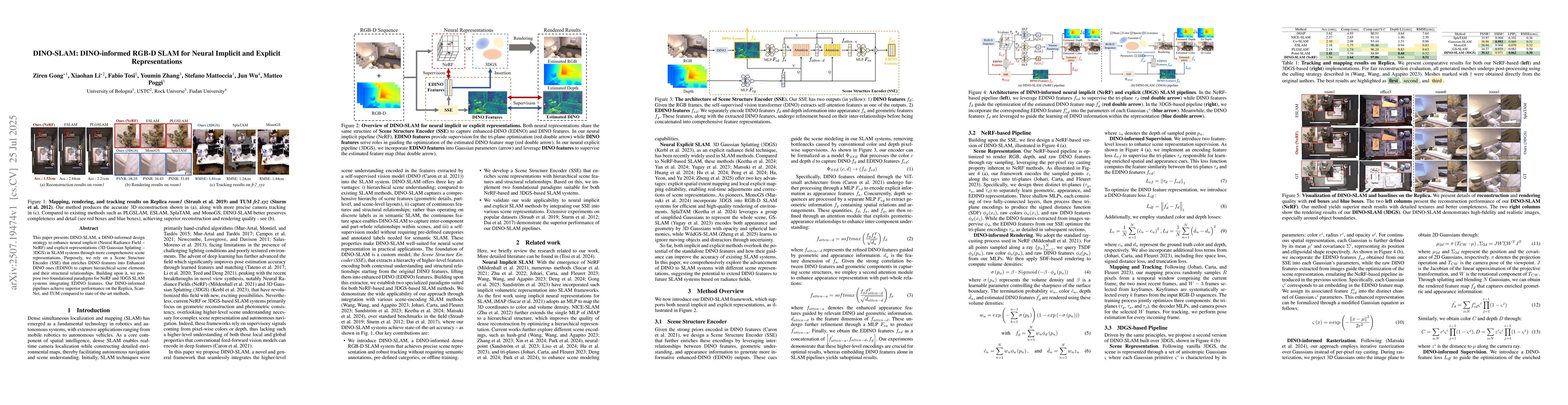 This paper presents DINO-SLAM, a DINO-informed design strategy to enhance neural implicit (Neural Radiance Field -- NeRF) and explicit representations (3D Gaussian Splatting -- 3DGS) in SLAM systems through more comprehensive scene representations. Purposely, we rely on a Scene Structure Encoder (SSE) that enriches DINO features into Enhanced DINO ones (EDINO) to capture hierarchical scene elements and their structural relationships. Building upon it, we propose two foundational paradigms for NeRF and 3DGS SLAM systems integrating EDINO features. Our DINO-informed pipelines achieve superior performance on the Replica, ScanNet, and TUM compared to state-of-the-art methods.