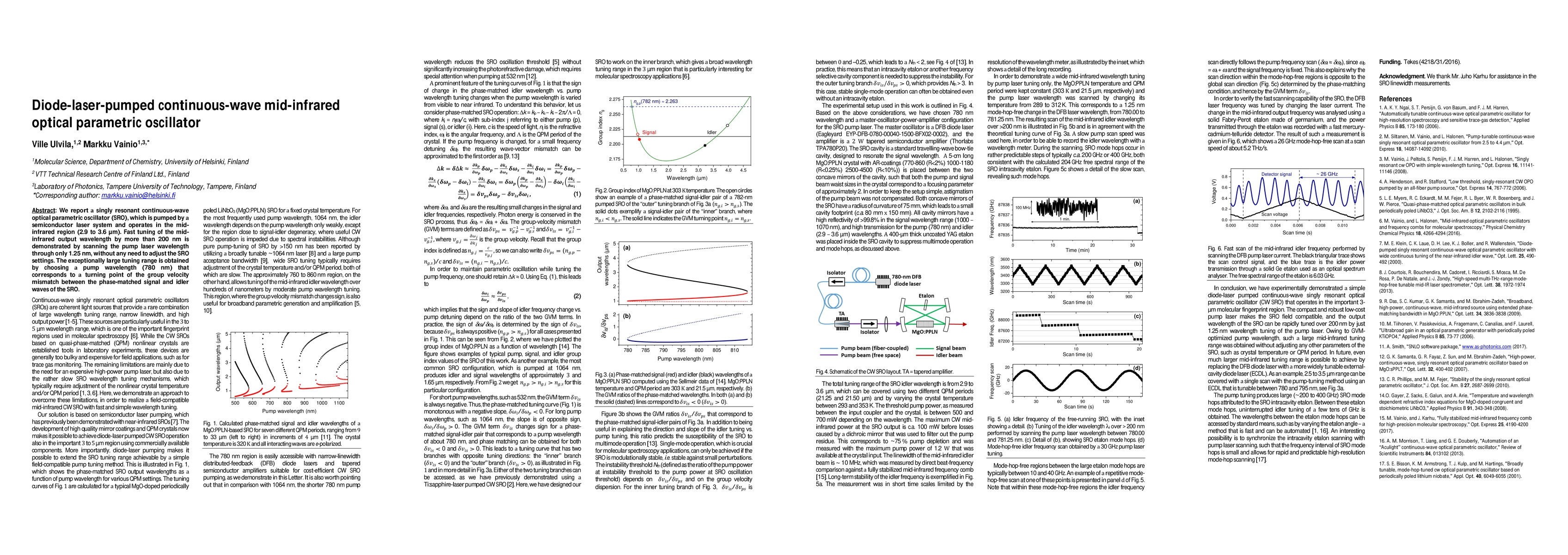 This paper describes a singly resonant continuous-wave optical parametric oscillator pumped by a diode laser, operating in the mid-infrared range (2.9 to 3.6 μm) with a large tuning range of over 200 nm achieved by adjusting the pump laser wavelength. The large tuning is enabled by selecting a pump wavelength that minimizes group velocity mismatch.
